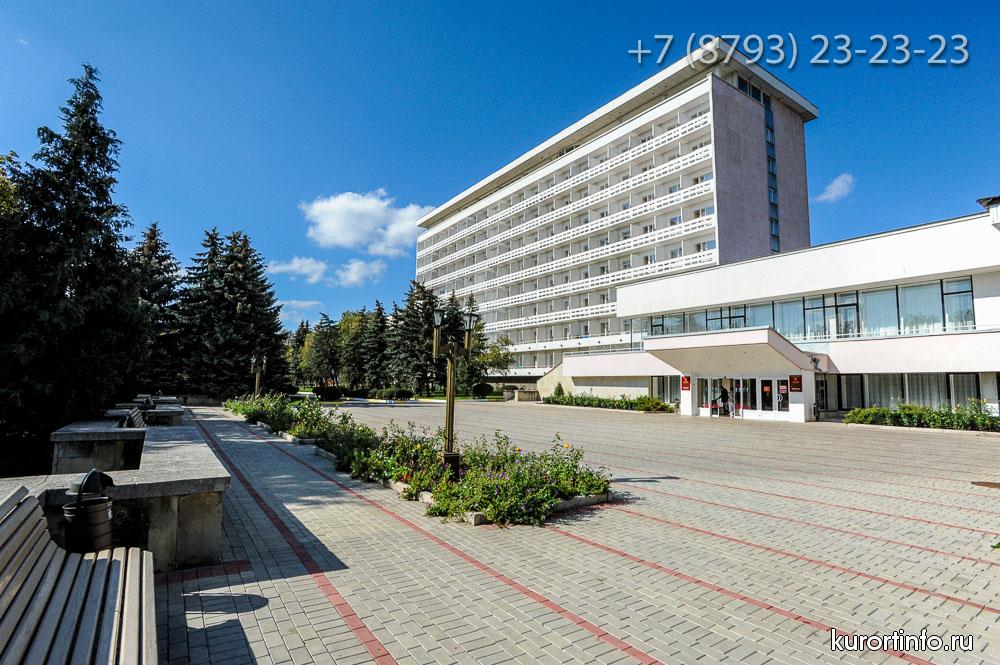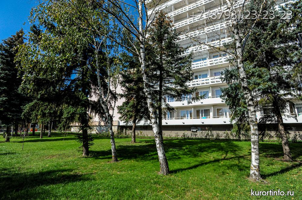 Территория здравницы занимает площадь более 7 гектар. Все корпуса соединены между собой крытыми теплыми переходами.