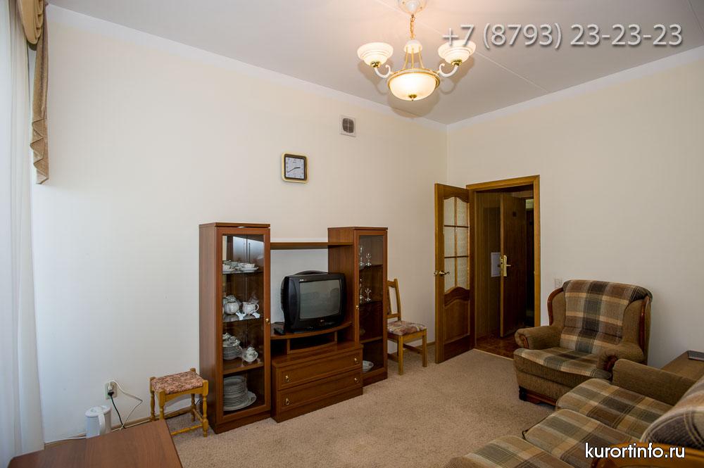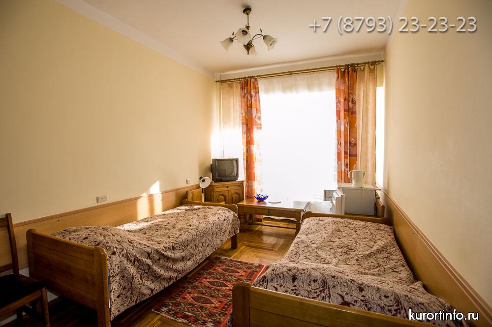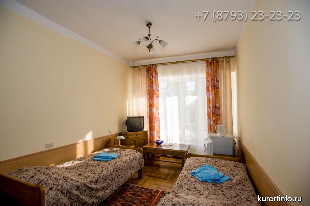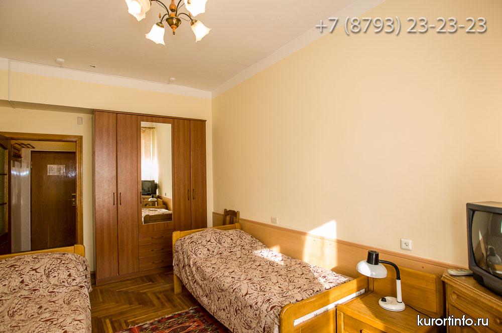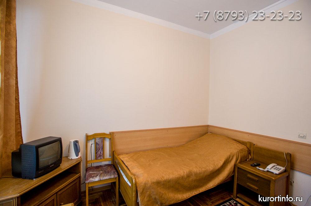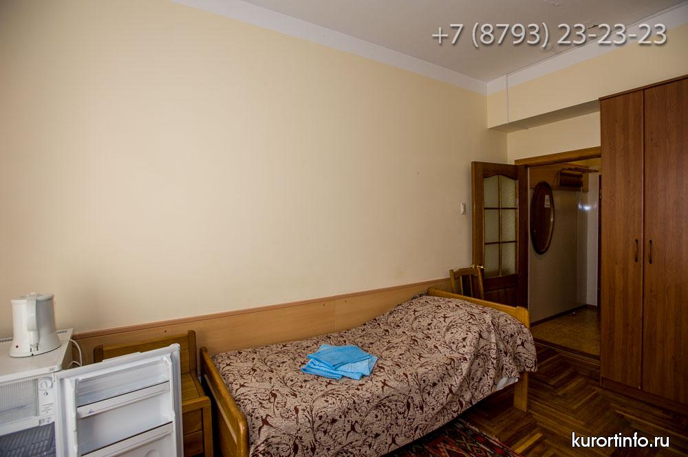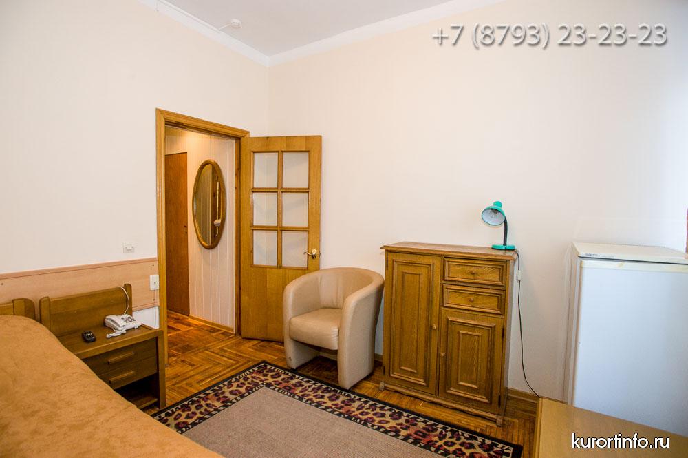 Все номера Ессентукской здравницы обустроены хорошей мебелью, телевизорами, холодильниками, и электрическими чайниками.