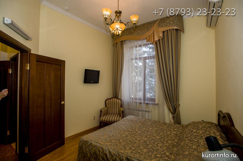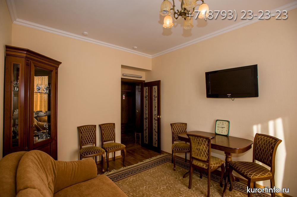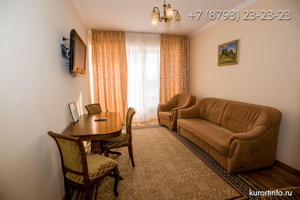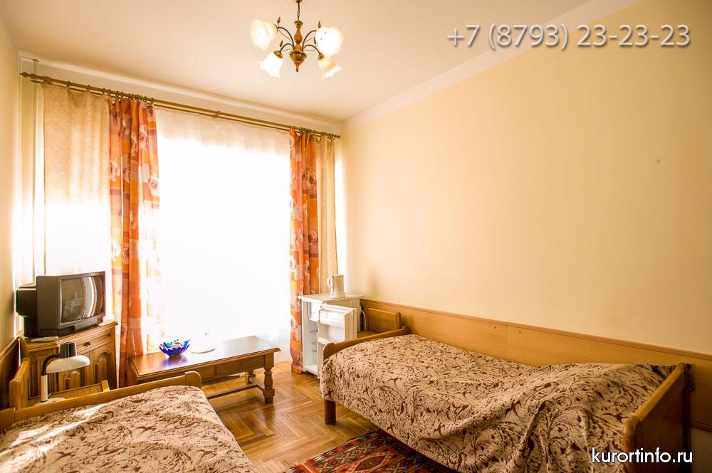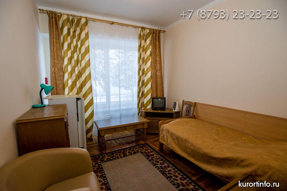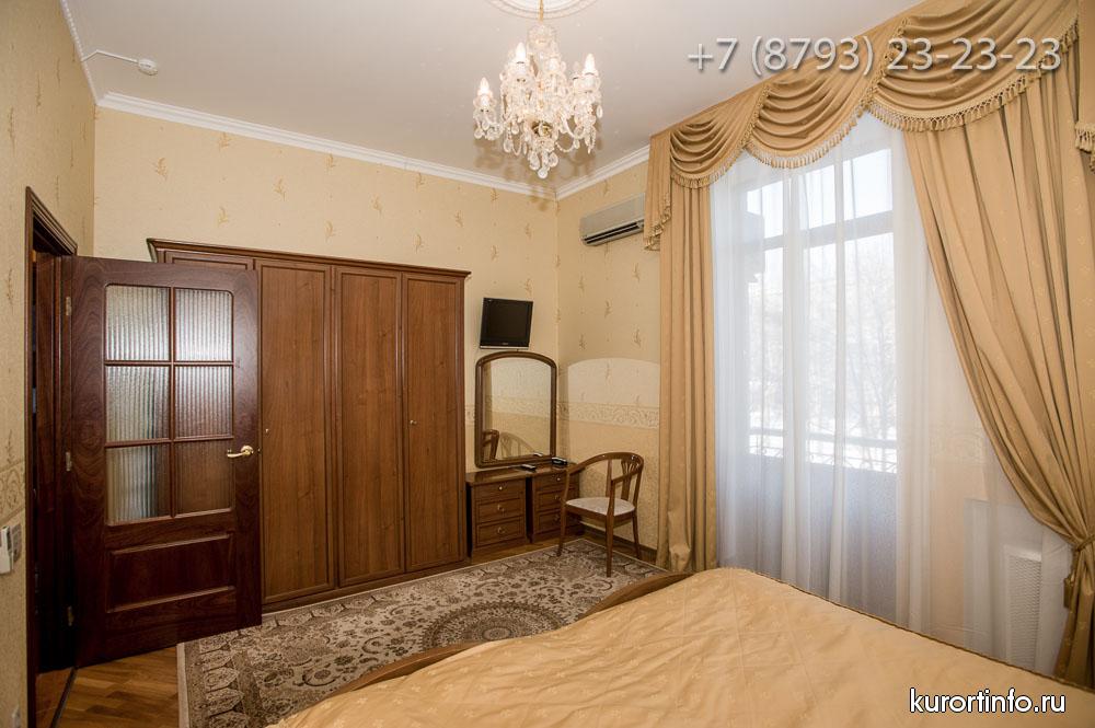 Все номера Ессентукской здравницы обустроены хорошей мебелью, телевизорами, холодильниками, и электрическими чайниками.