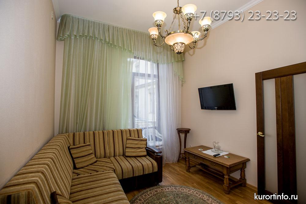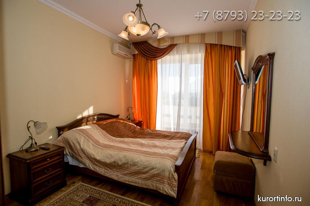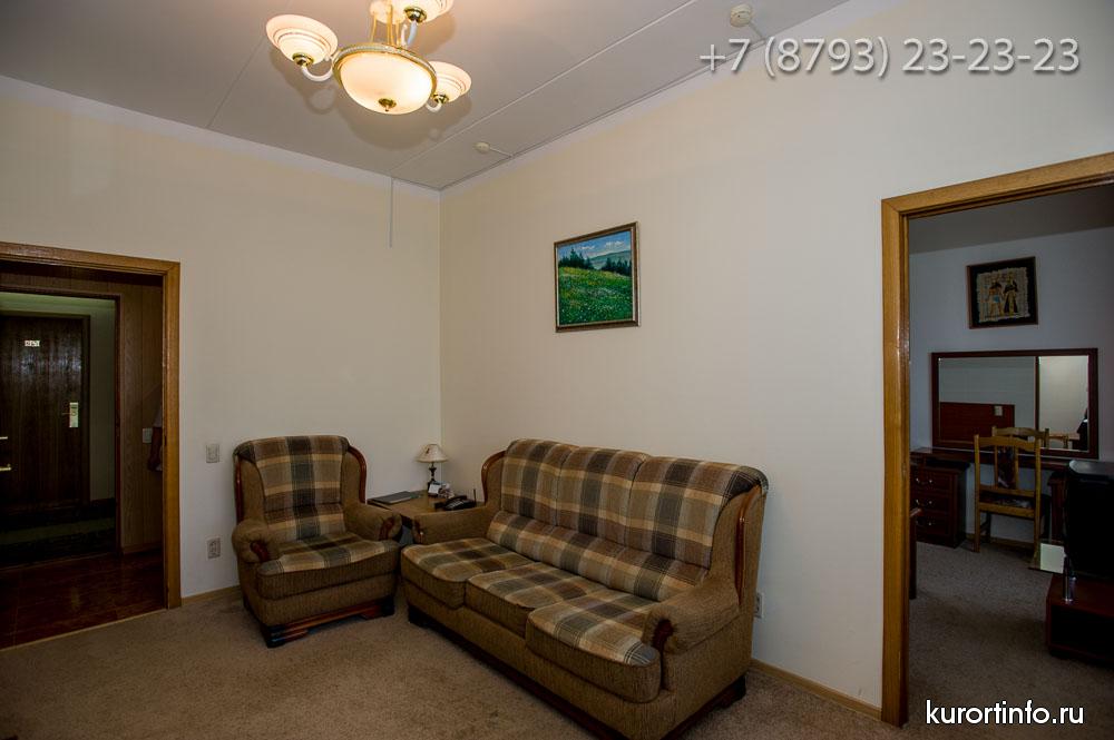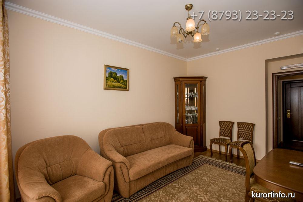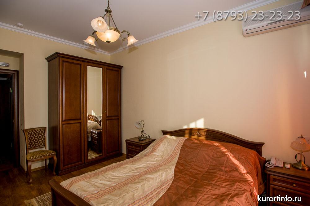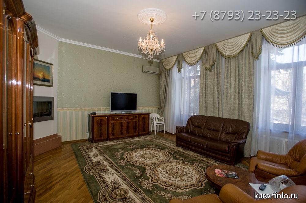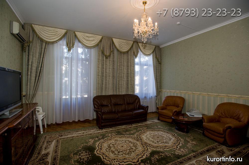 Все номера Ессентукской здравницы обустроены хорошей мебелью, телевизорами, холодильниками, и электрическими чайниками.
