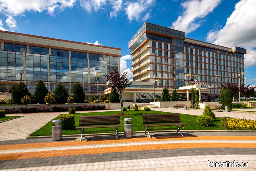 Санаторий «Русь» рассчитан на размещение и лечение большого количества посетителей: на огромной территории площадью более 6 га расположены 2 современных 9-ти этажных комфортабельных жилых корпуса, медицинский корпус, SPA центр, комплекс диетического питания, конференц-залы и бизнес-центр. Все корпуса здравницы соединены между собой теплыми переходами. Ессентукский санаторий обладает собственной обширной парковой зоной.