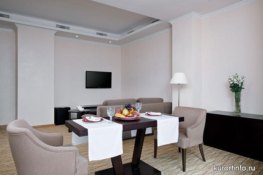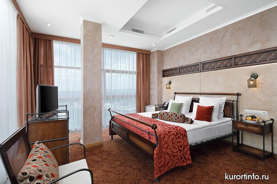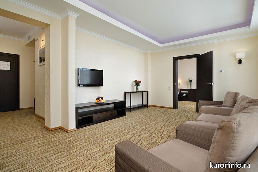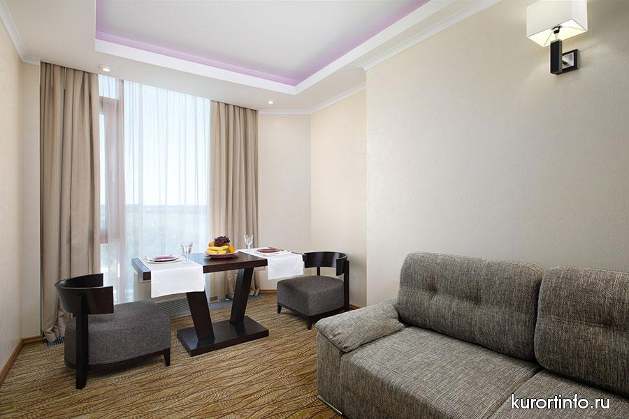 Номерной фонд Ессентукского санатория оснащен по последнему слову техники и эргономики. Все номера санатория выполнены в современном дизайне. Панорамное остекление номеров позволяет отдыхающим наслаждаться великолепными видами окружающих пейзажей.