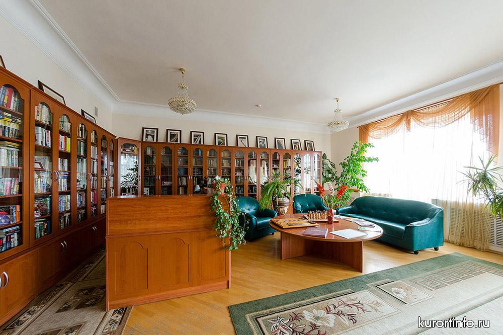 В большой, но при этом уютной библиотеке можно уединиться с художественной книгой или интересной газетой и свежим журналом.