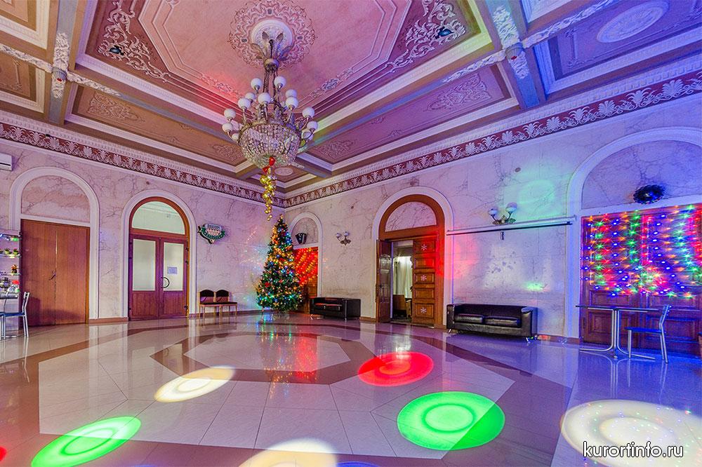 Здравница позаботилась о том, чтобы прием пищи приносил вам не только гастрономическое, но и настоящее эстетическое удовольствие. Питание проходит в роскошном, просторном ресторане, который оформлен в дворцовом стиле. Панорамные окна, большие колонны, высокие потолки, живые цветы, необычная архитектура - здесь по-настоящему торжественно и красиво.
