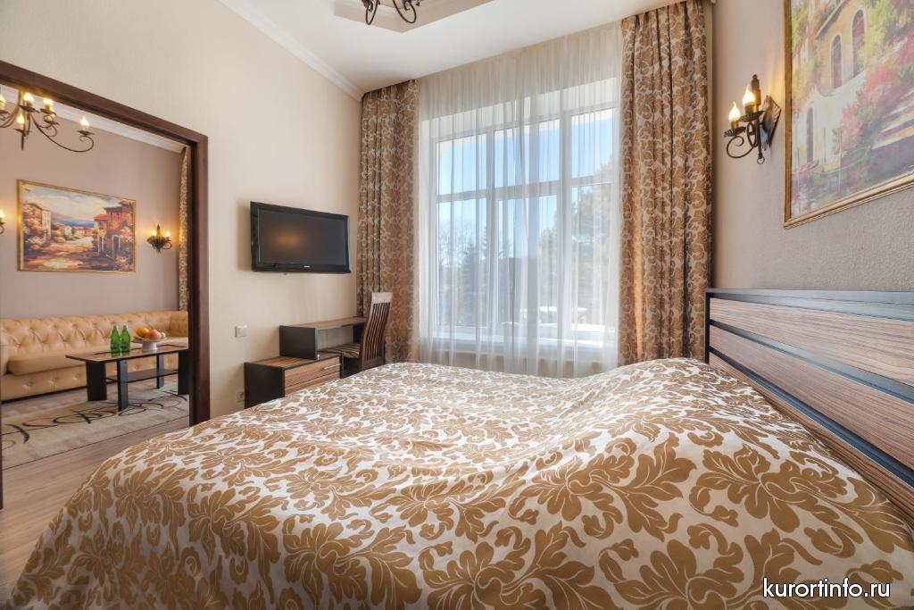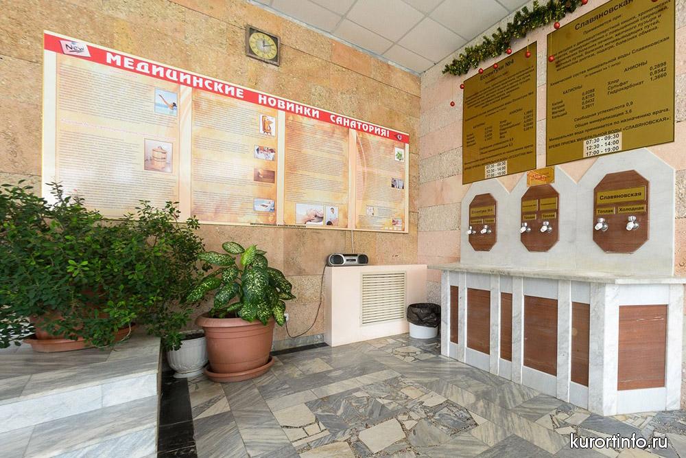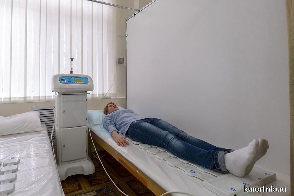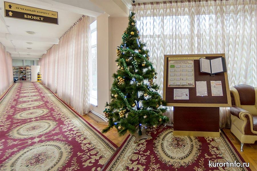 Кисловодская здравница обладает мощной лечебной базой. К услугам гостей собственная водо-лечебница (бассейн, нарзанные ванны, лечебные души), ингаляторий, кабинет нарзанных орошений, лазеротерапия, грязелечение и теплолечение.