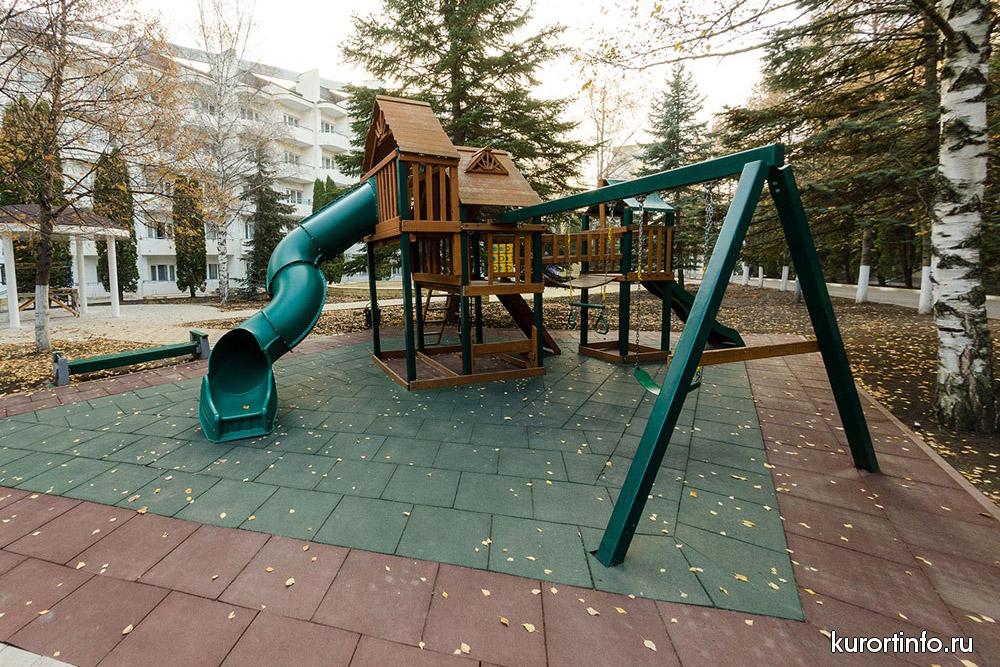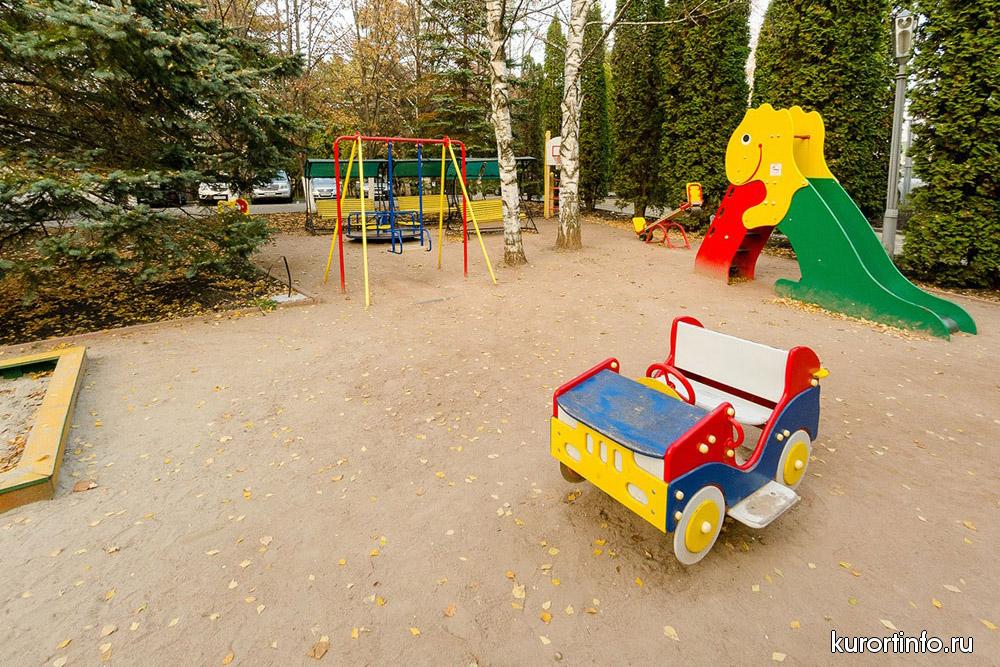 Для маленьких гостей санатория есть игровая комната в которой, проводятся разнообразные мероприятия, конкурсы, развлекательные и интеллектуальные игры. На детской площадке дети катаются на качелях и играют в песочнице под присмотром воспитателя.