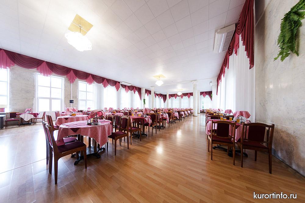 Посетители Кисловодского санатория питаются в уютном малом и просторном большом залах. Столовая здравницы, может единовременно разместить до 230 человек.