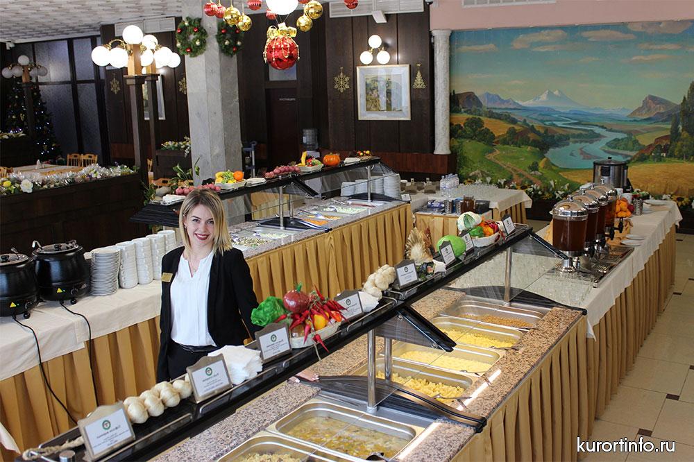 В Кисловодском санатории во всех залах предлагается сбалансированное меню, разработанное на основании стандартных диет от №1 до №15. Для маленьких гостей санатория предусмотрено 4х разовое питание включая полдник.