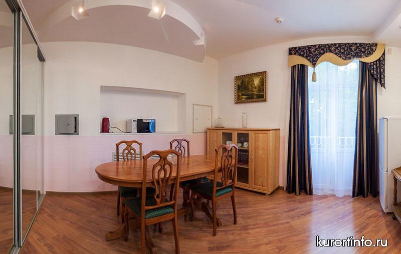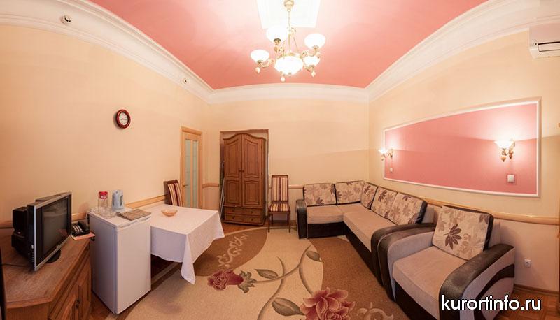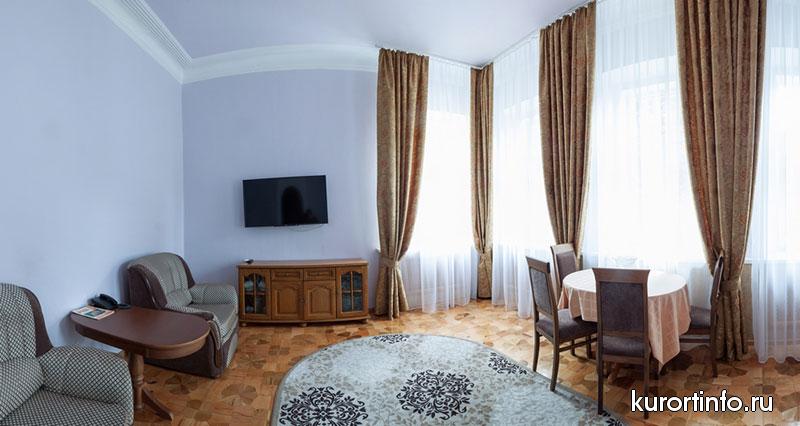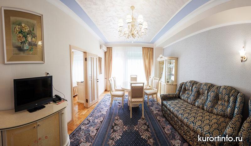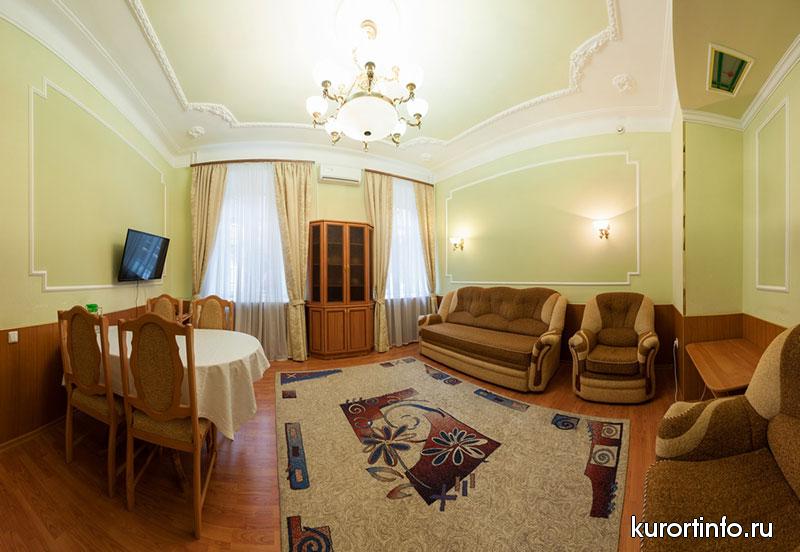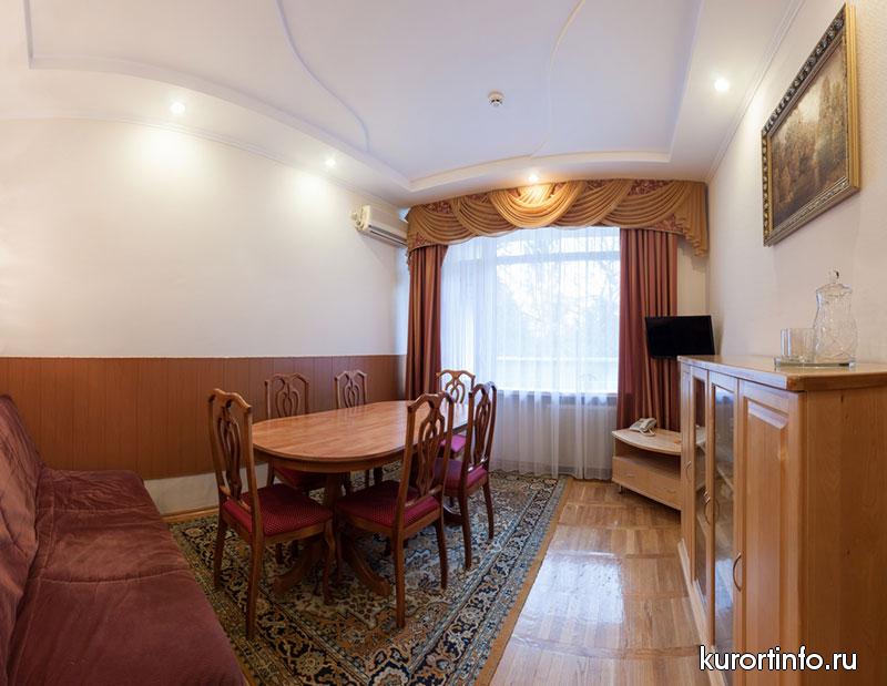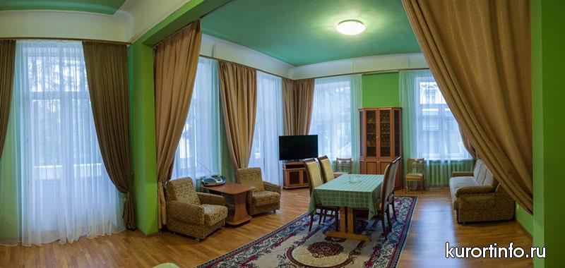 Гостям Кисловодской здравницы доступны номера различных категорий: комфортабельные номера эконом-класса, двухкомнатные и однокомнатные номера повышенной комфортности, люксы и полу-люксы, трехкомнатные апартаменты и четырех комнатные президентские номера в которых есть финская мини-сауна и турецкий хамам.
