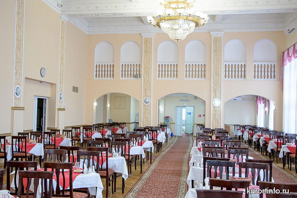 В Кисловодском санатории Вас ждет красивая столовая, которая состоит из трех уютных залов. Один из залов предназначен для питания маленьких гостей санатория. Санаторий предоставляет своим гостям разнообразное меню, которое порадует большим выбором полезных блюд из овощей, мяса, рыбы, свежей зелени, круп и полезных напитков.