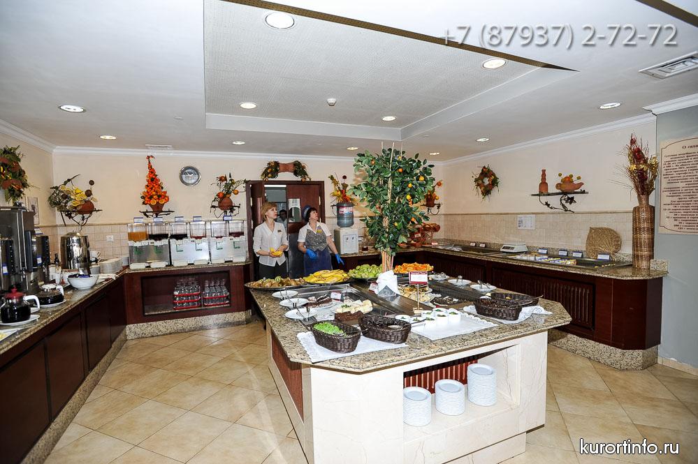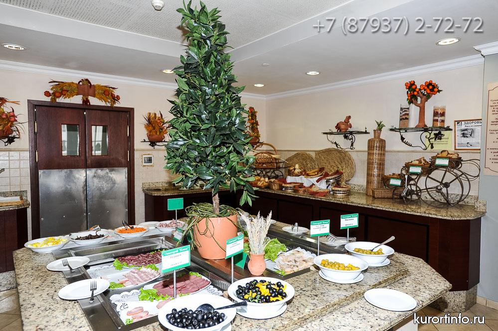 Санаторий «Плаза» это первый санаторий курортного города Кисловодска, который предоставляет своим посетителям 3х разовое питание организованное по системе «Шведский стол», которое основано на 14-дневном меню национальных кухонь всего мира. Вас порадуют блюдами французской, итальянской, израильской, греческой, английской, деревенской и других кухонь мира. Есть возможность заказа дополнительных блюд, что позволяет насладиться едой даже самым истинным гурманам.