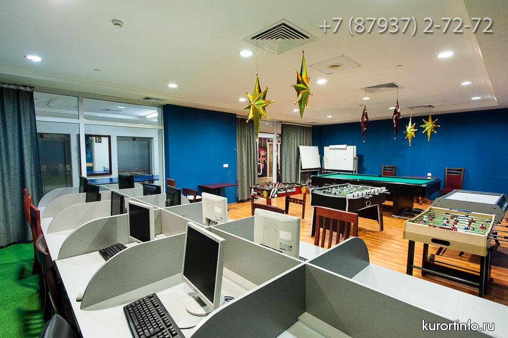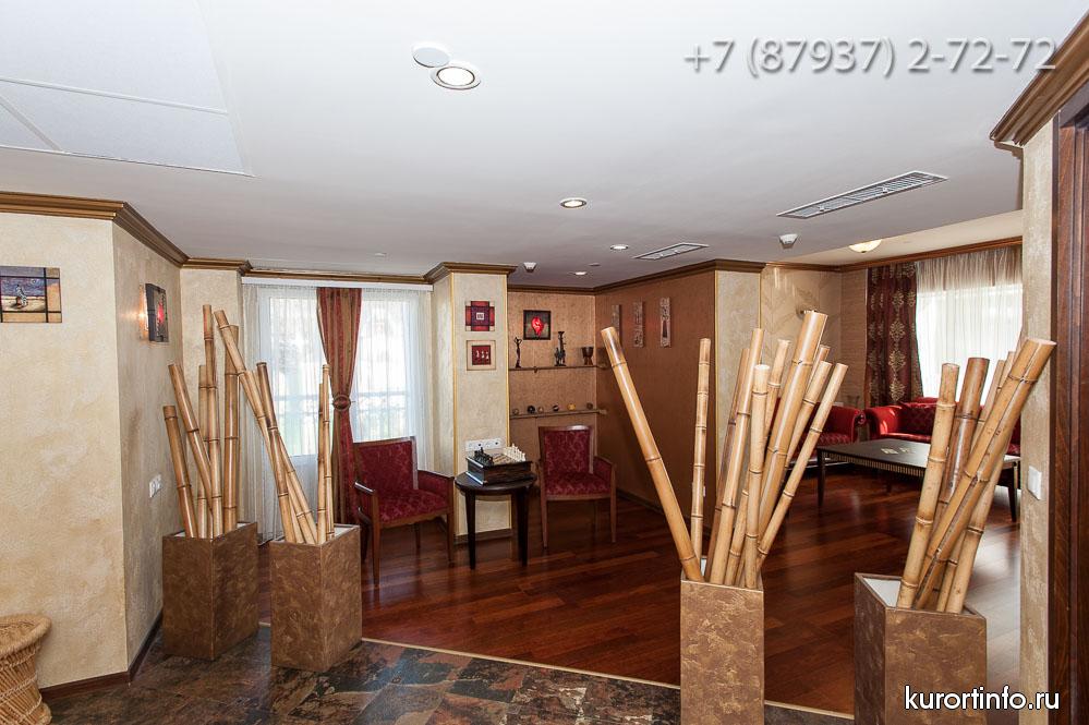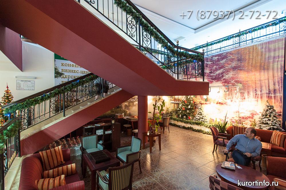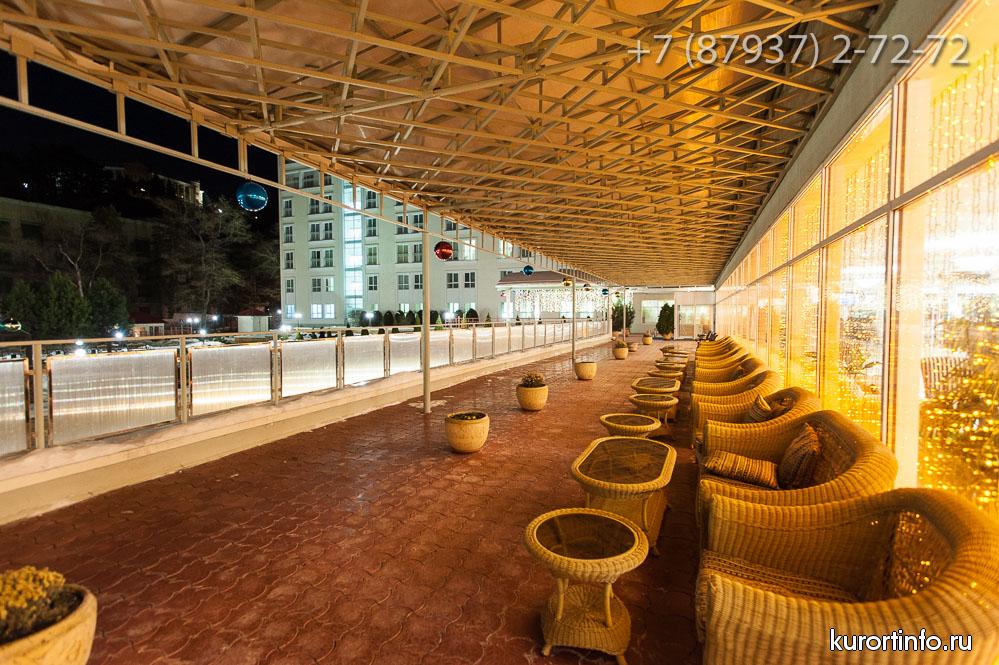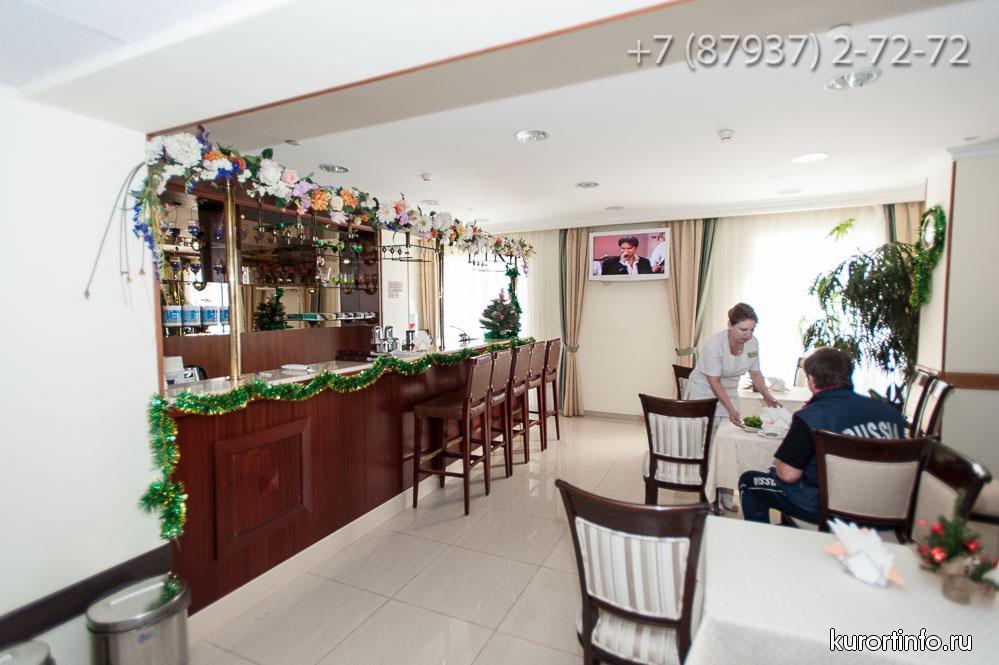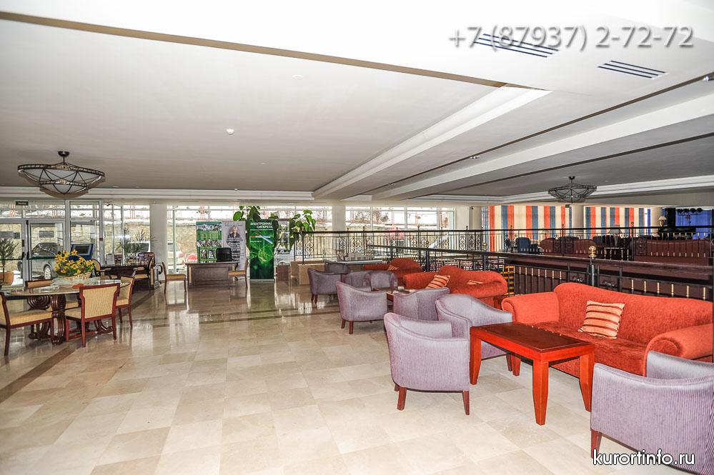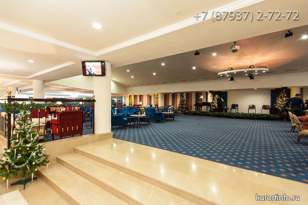 В главном холле здравницы находится замечательный лобби-бар. Здесь отдыхающим предлагают не только различные закуски и напитки, но и увлекательное представление в вечернее время.