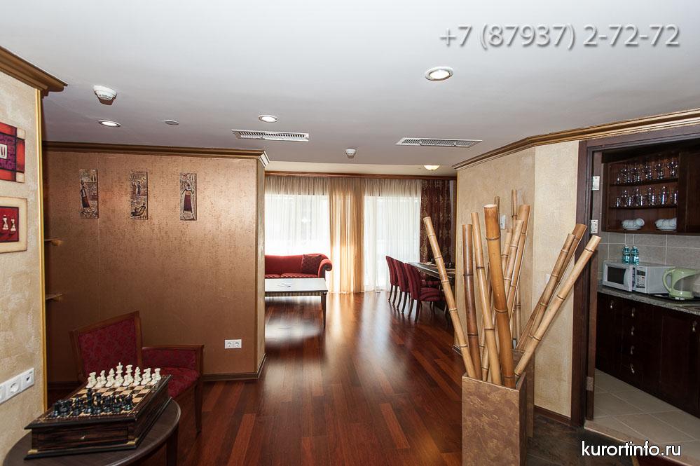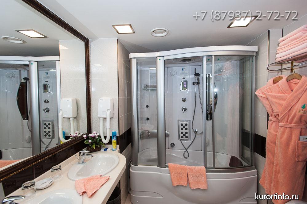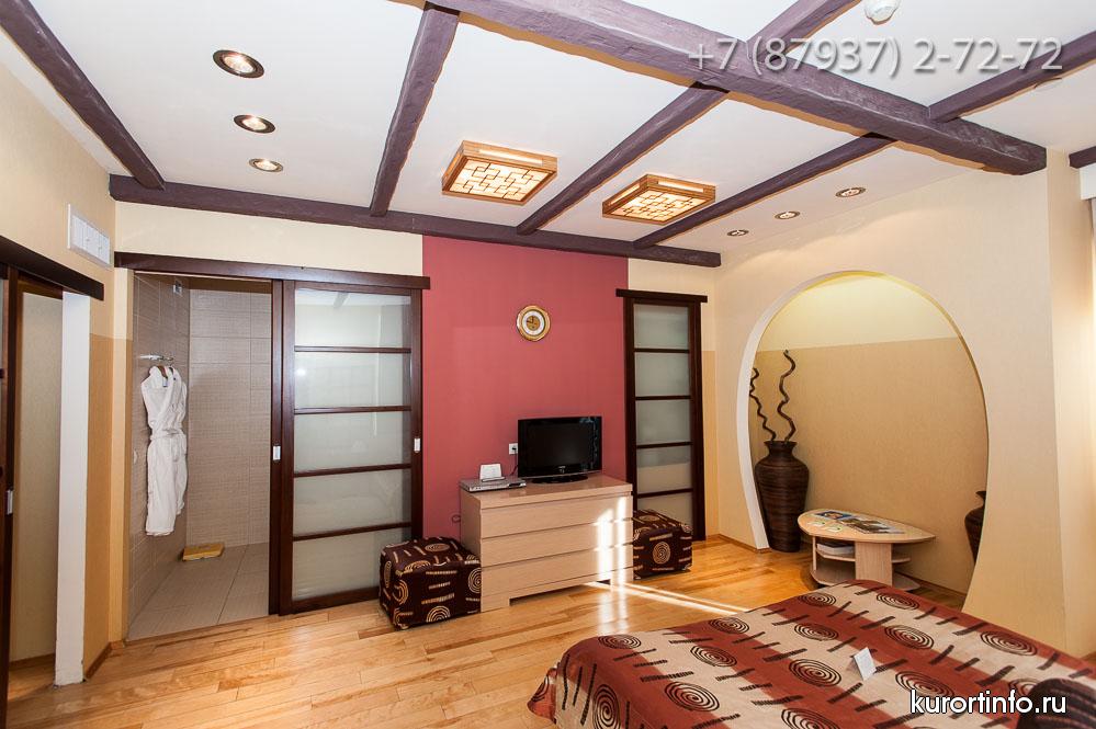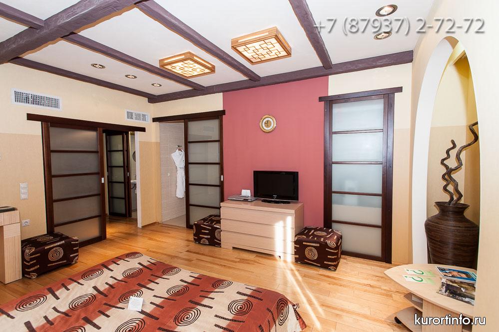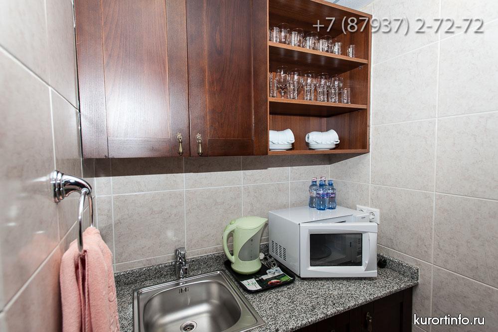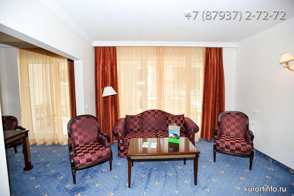 Все номера здравницы оборудованы кондиционерами и обставлены деревянной мебелью. К услугам гостей в каждом номере: спутниковое TV, кухонные принадлежности, халаты и косметические принадлежности.