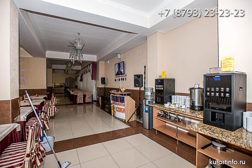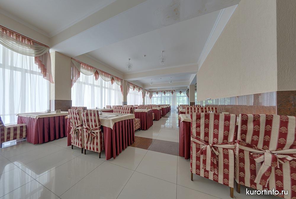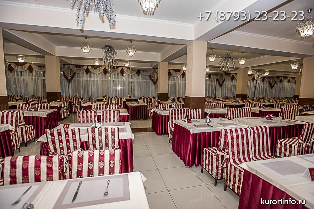 Меню ресторана составлено высококвалифицированными поварами Кисловодского санатория, и включает широкий список различных блюд. Вас ждут всевозможные горячие и холодные закуски, мясные, овощные и рыбные блюда, свежие овощи, салаты, кондитерские изделия и фрукты.
