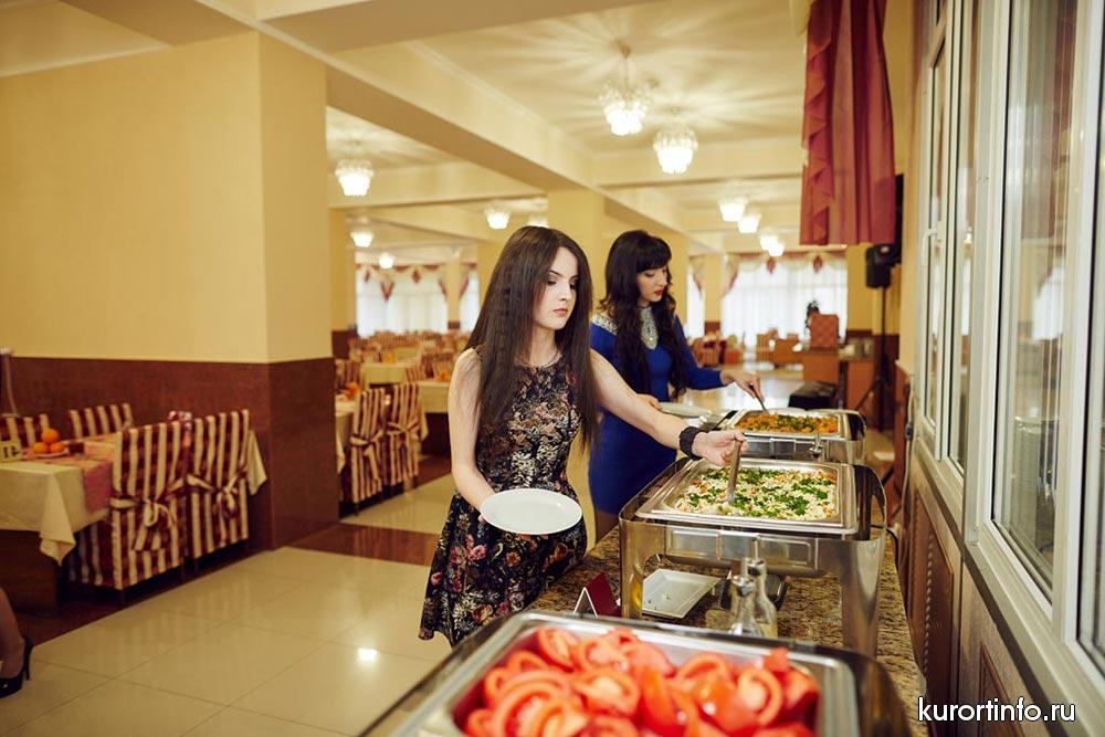 Питание в санатории «Родник» 4-х разовое, организованное по системе «Шведский стол». Осуществляется в просторном обеденном зале ресторана, который рассчитанный на прием до 330 посетителей.