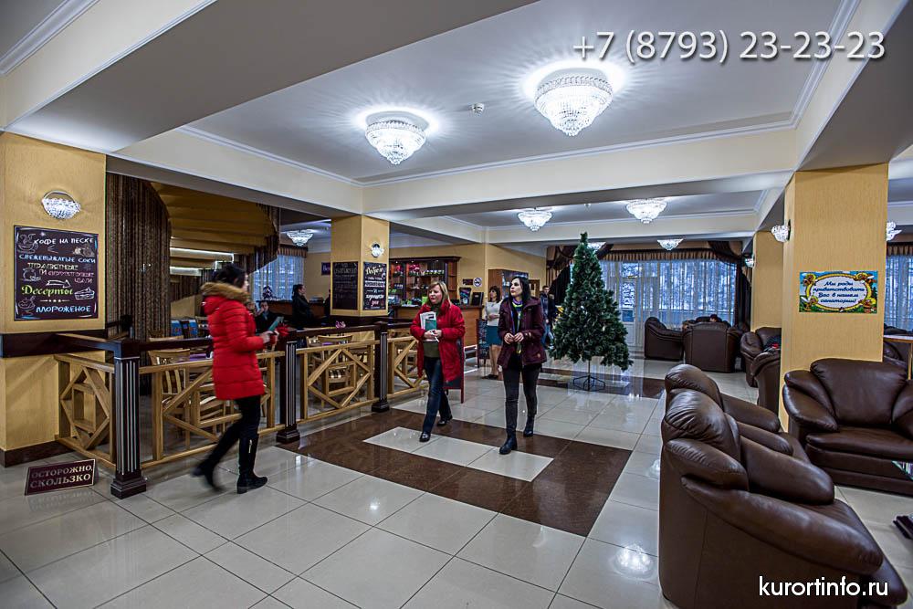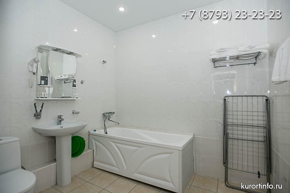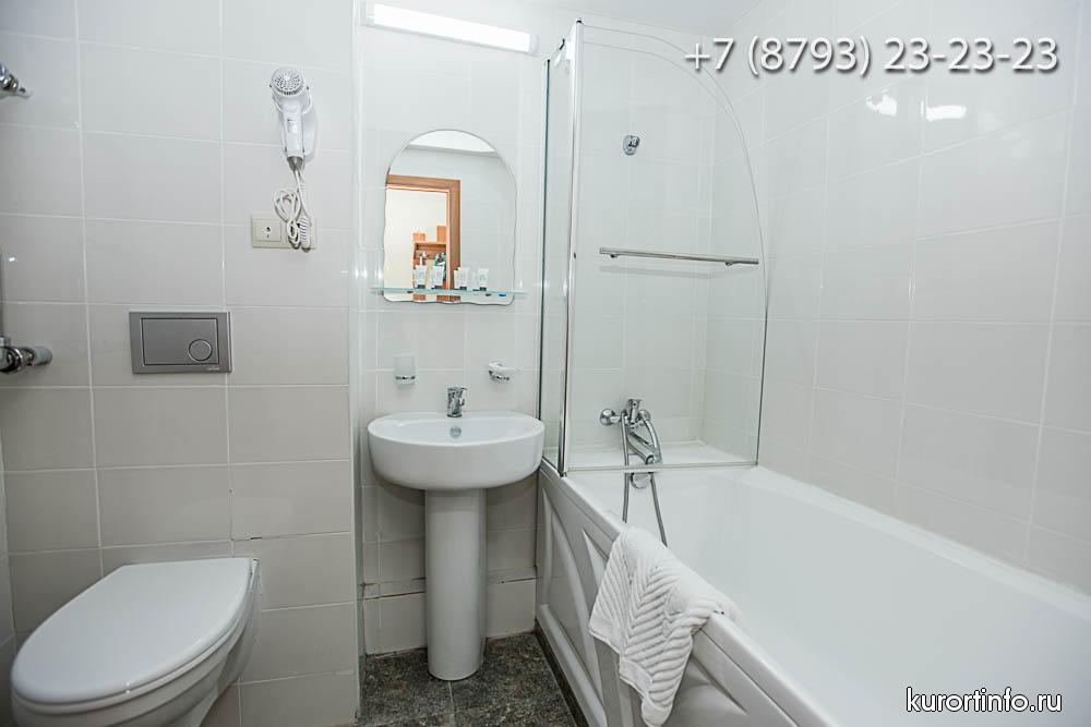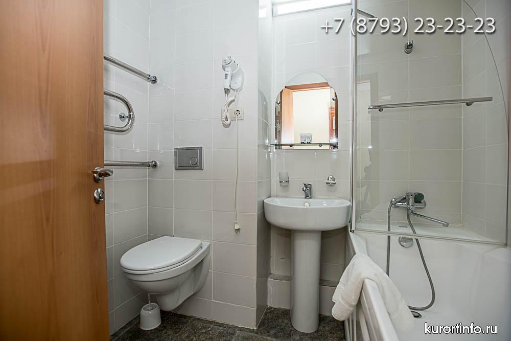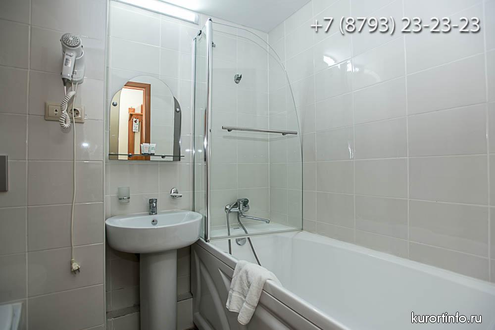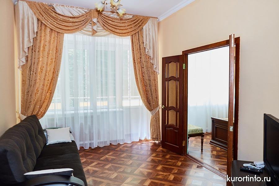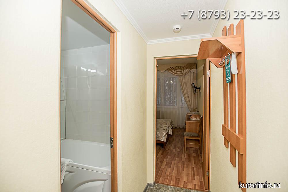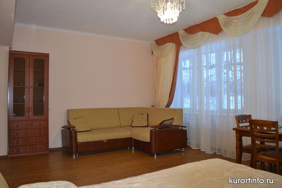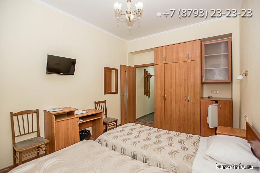 Каждый номер санатория оборудован всем необходимым для комфортного проживания и отдыха: посудой, электрочайником, телевизором, холодильником, ванными принадлежностями, феном и сейфом.