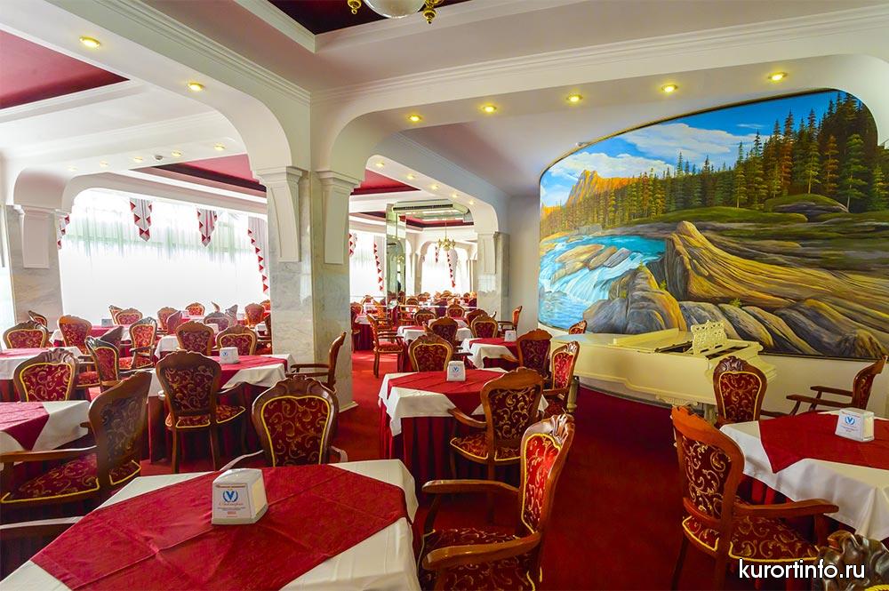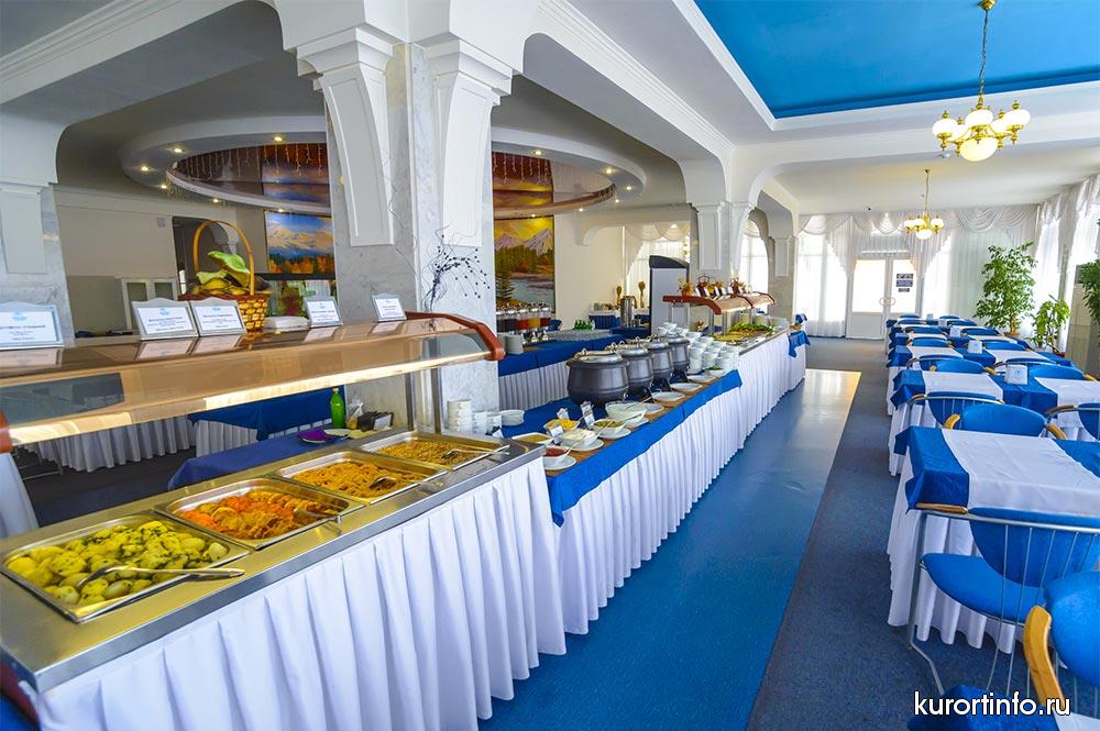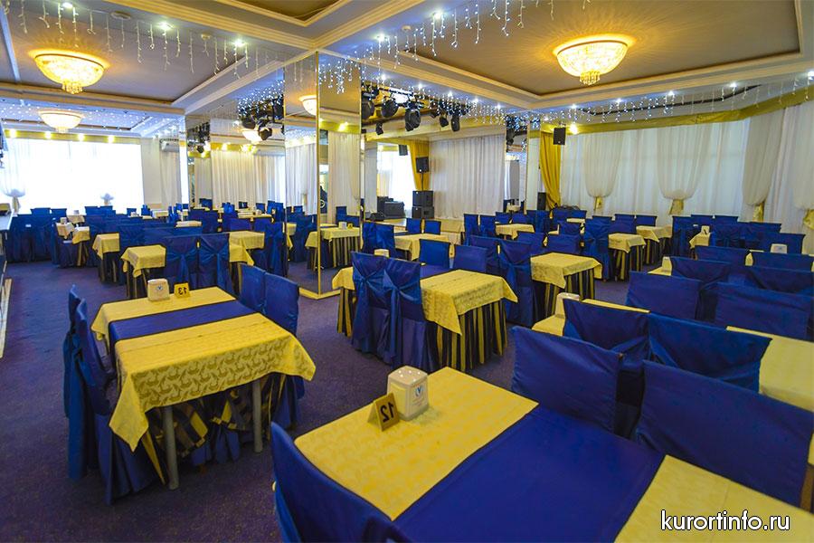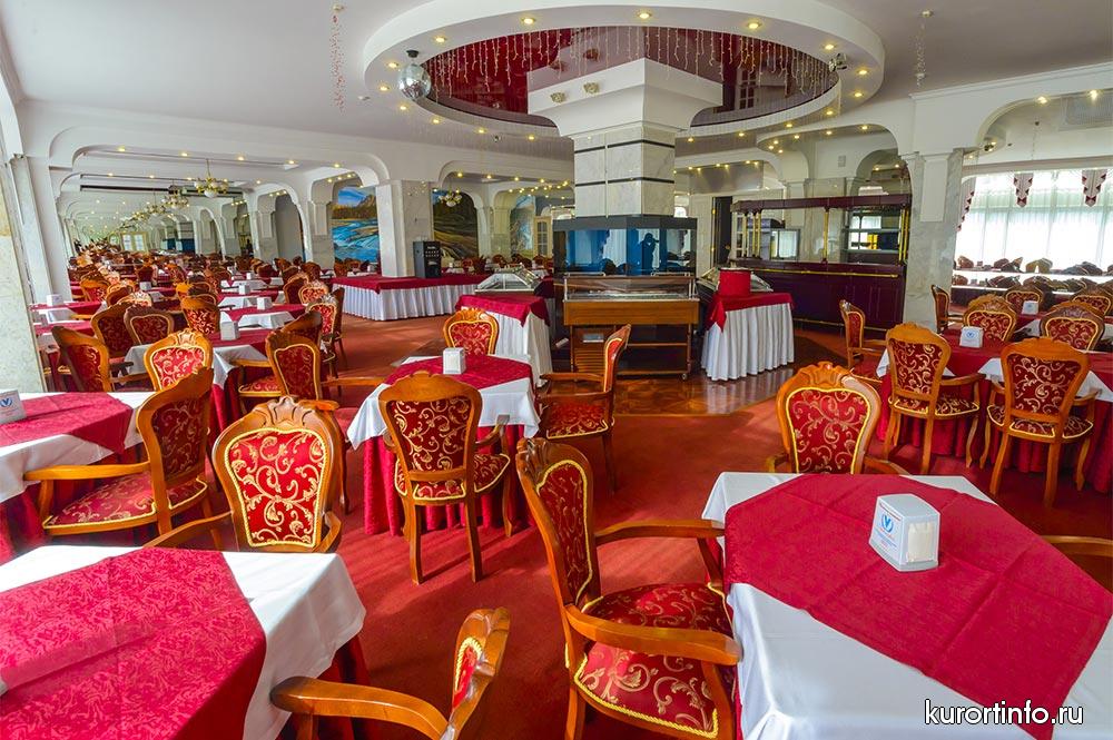 В основных залах организованно трехразовое питания по системе шведский стол с большим ассортиментом вкусных диетических блюд. Оба зала достаточно вместительны, Рубин может разместить до 136 гостей, а Сапфир до 202.