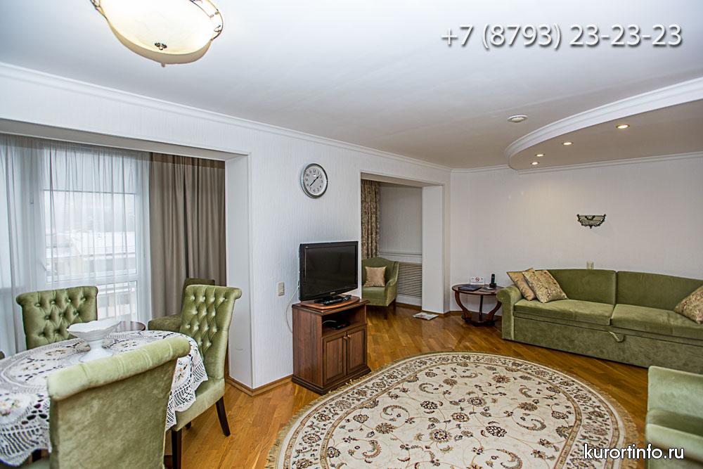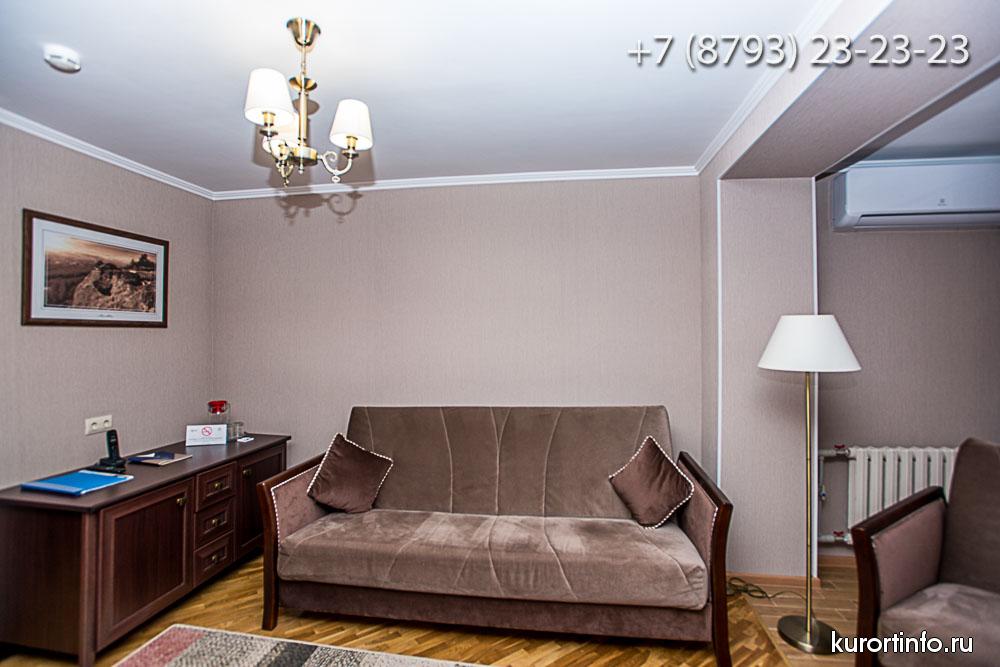 Кисловодский санаторий единовременно может разместить более 400 посетителей. Здравница принимает на лечение и отдых как взрослых, так и детей от 4-х лет.