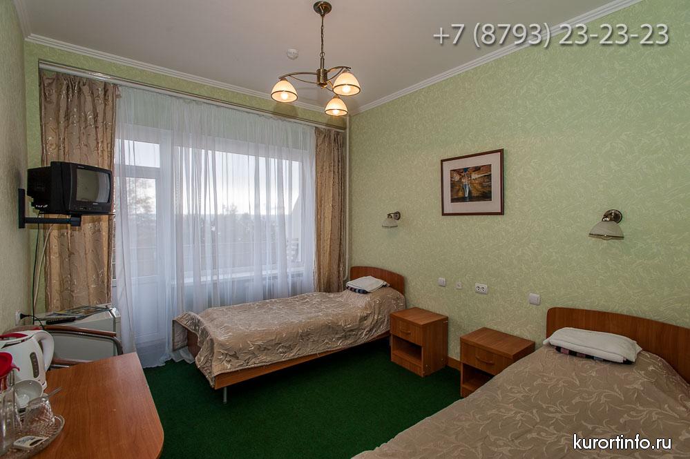 Гости санатория "им. Лермонтова" размещаются в комфортных одноместных и двухместных номерах категории стандарт, в номерах повышенной комфортности и номерах категории "Люкс".
