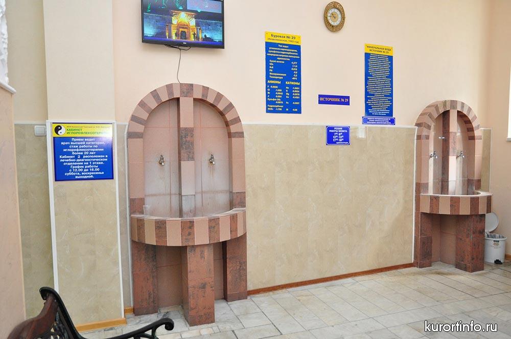 К услугам гостей Cанатория "им. Лермонтова" - 4 бювета знаменитой во всем мире целебной минеральной воды, один из которых расположен прямо в лечебном корпусе.