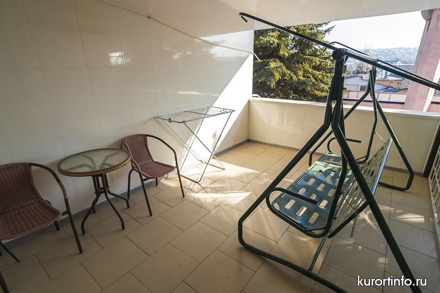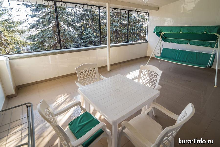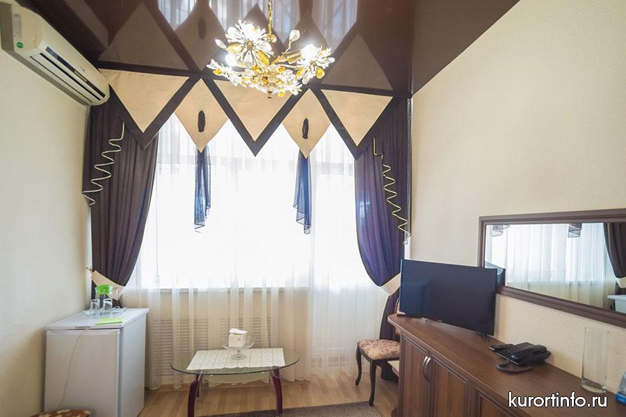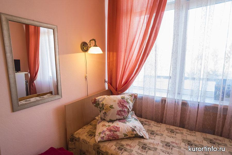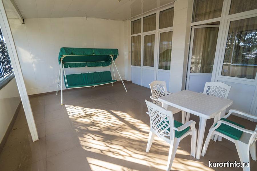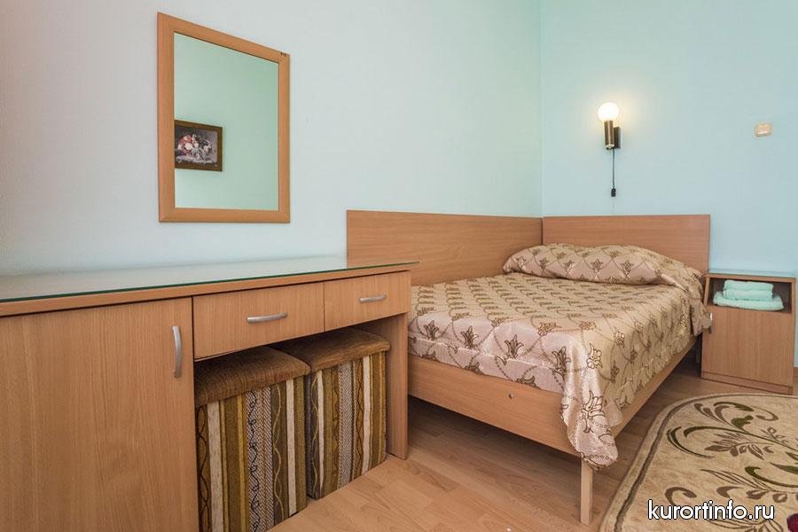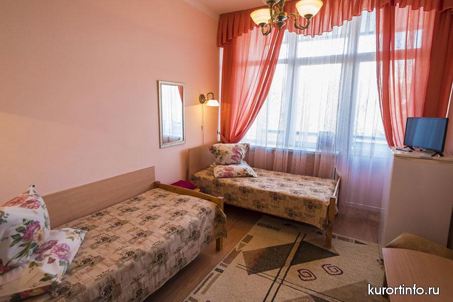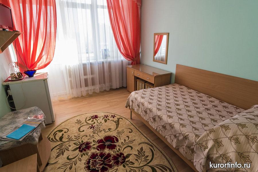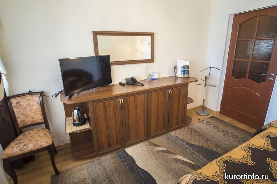 В каждом номере есть балкон, туалет, ванна или душ. Кроме того, все номера санатория оборудованы холодильником и телевизором.