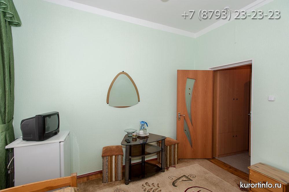 На каждом этаже Пятигорской здравницы есть кулеры, с питьевой водой. В санатории могут проживать не только взрослые, но и родители с детьми.
