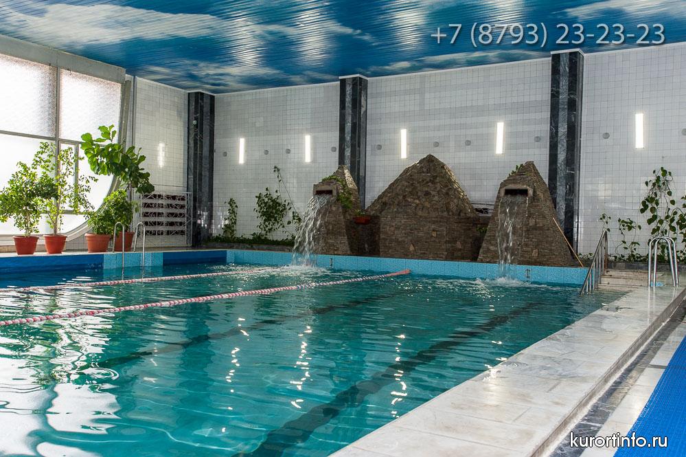 Лечение в здравнице направлено не только на избавление от имеющихся заболеваний, а и на улучшение состояния человека в целом. С радостью приглашаем Вас в просторный крытый плавательный бассейн. Посещение бассейна для гостей здравницы «Зори Ставрополья» абсолютно бесплатное.