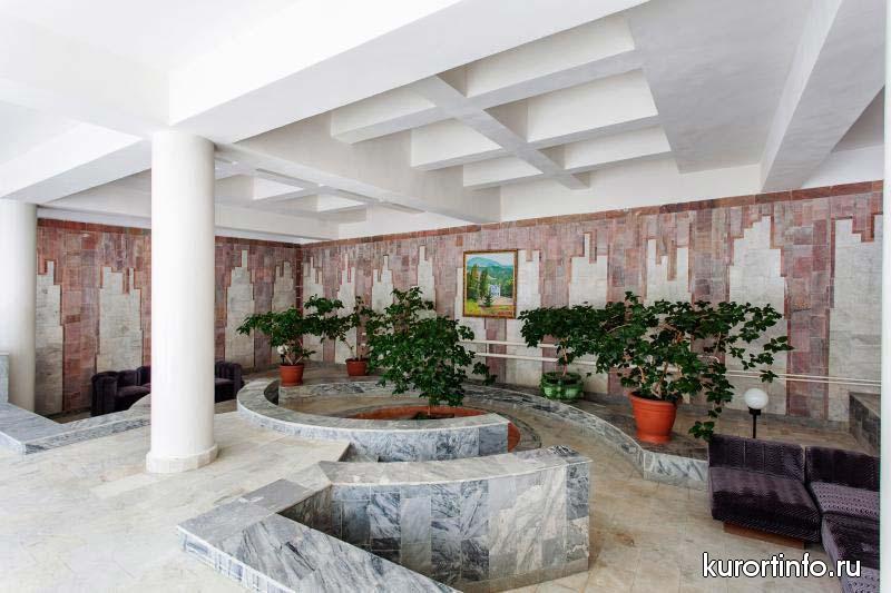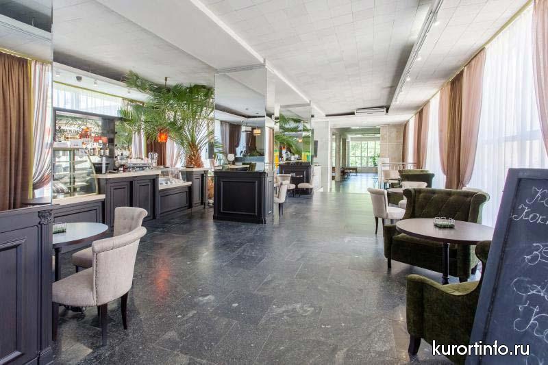 Лобби - бар находится рядом с зимним садом, в окружении красивых живых растений, недалеко от обеденного зала Железноводской здравницы.