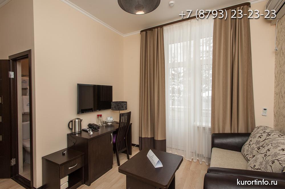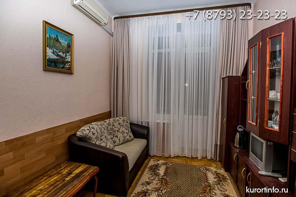 В санатории «Бештау» предлагается большой выбор разных вариантов размещения. Не только люксы и комфортабельные двухместные, но и экономичные блочные номера, состоящие из 2х раздельных комнат – двухместной и одноместной, их можно брать как полностью для семьи так и по одной, общим будет корридор и санузел.
