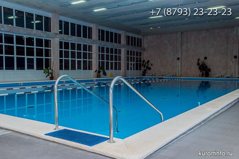 В бассейне проводится лечебное плаванье, которое назначается пациентам при заболеваниях внутренних органов, опорно-двигательного аппарата, болезнях сердечнососудистой системы, ожирении, неспецифических бронхолегочных заболеваниях и неврозах.