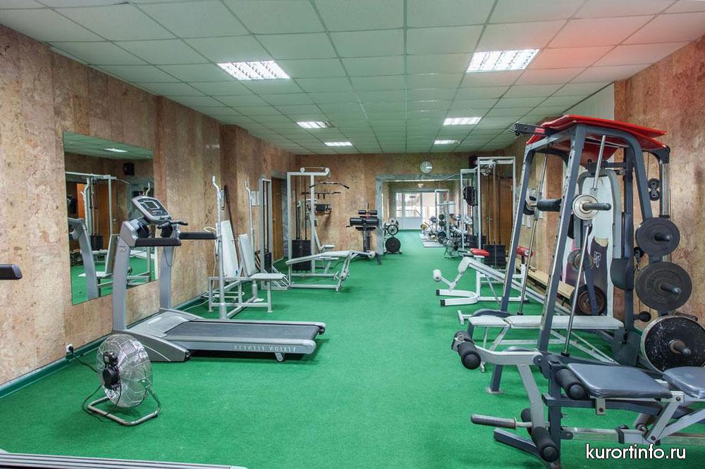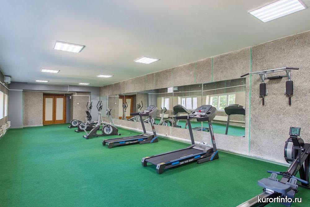 Тренажерный зал здравницы, в первую очередь предназначен для профессиональных силовых занятий. Здесь Вы сможете дать основательною нагрузку всем группам мышц. В зале есть гантели разного веса, олимпийские штанги, силовые тренажеры, которые направлены как на растяжку, так и на укрепление мышц всего организма. В зале есть современные беговые дорожки, велоэргометры, различные тренажеры и два многофункциональных силовых тренажера.
