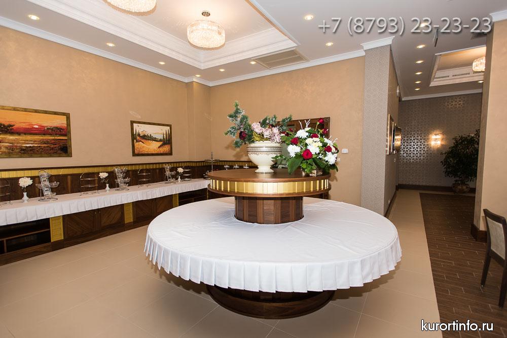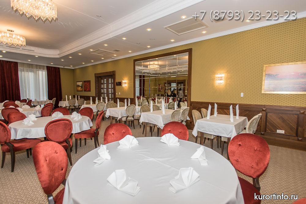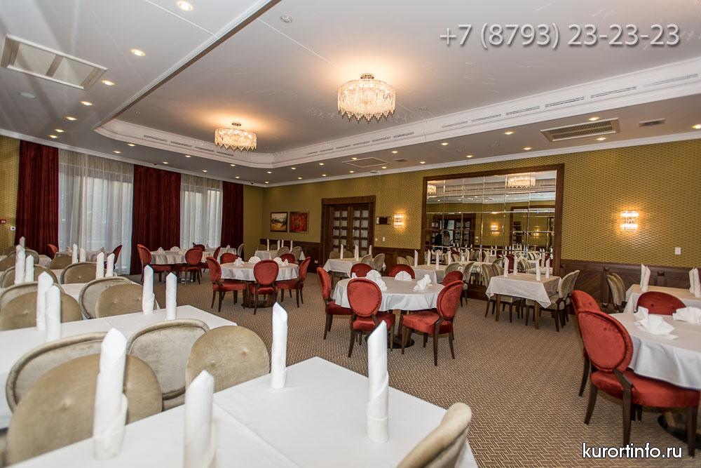 В большом и роскошном, но при этом уютном обеденном зале санатория, организовано сбалансированное питание основанное на принципах общественного и лечебно-диетического питания. В Железноводском санатории предоставляется четырехразовое питание. При необходимости врач назначает 5 или 6 разовое питание. Питание проходит по полуресторанной системе с предварительным заказом блюд на предстоящие дни.