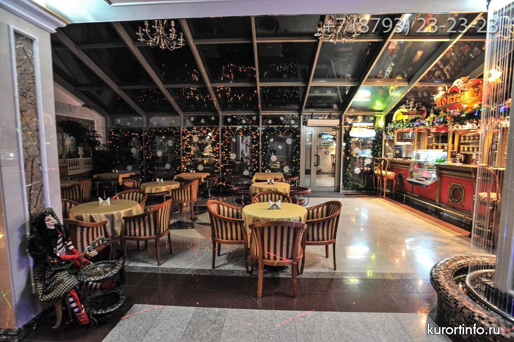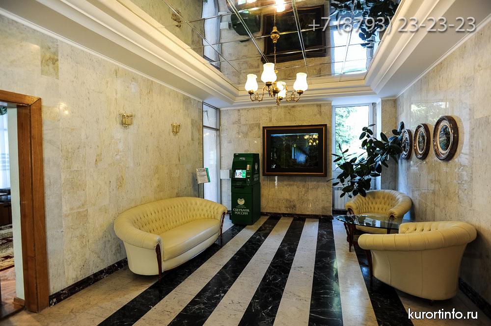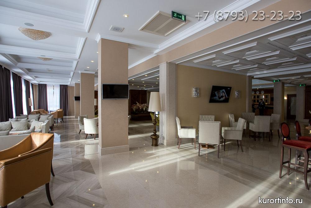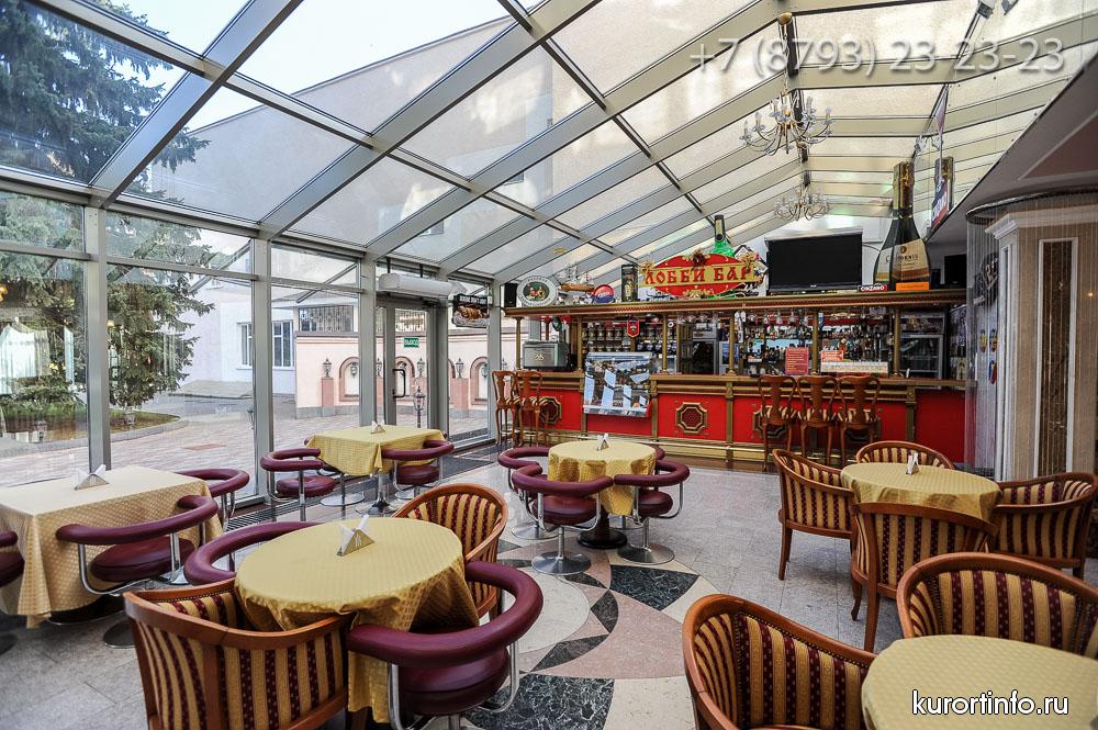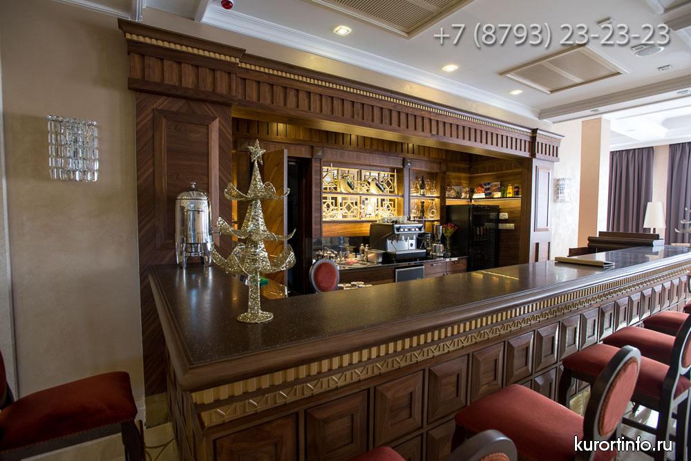 В лобби-баре представлен широкий выбор коньяка и изысканных вин, предоставлен большой ассортимент виски, английские джины, и ликеры из Германии, Франции и Италии.