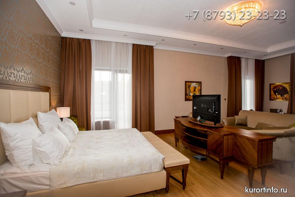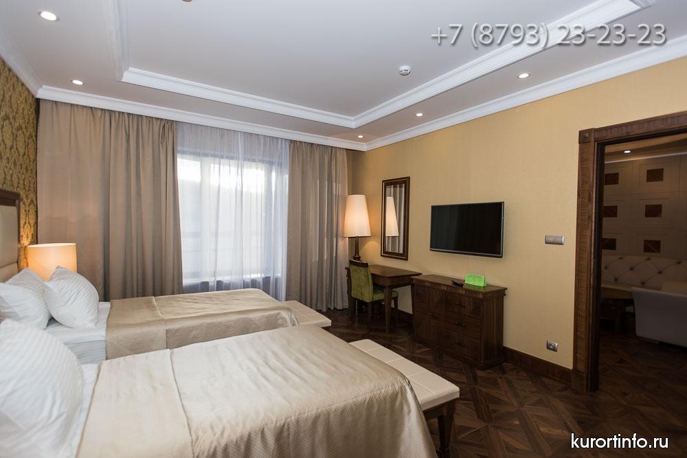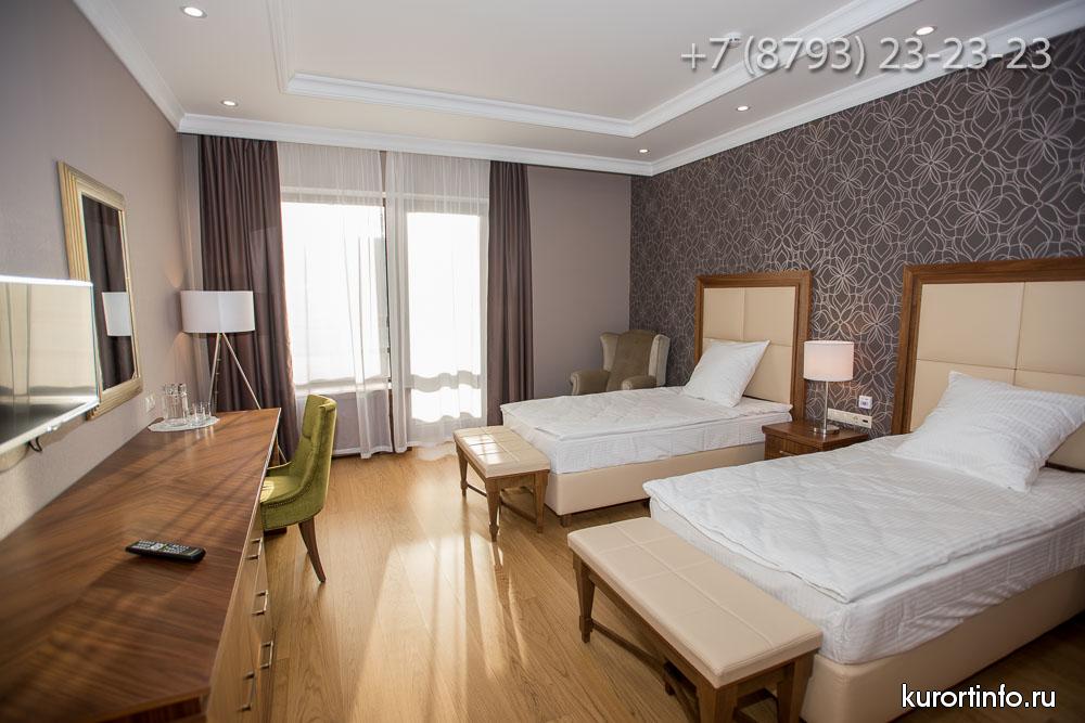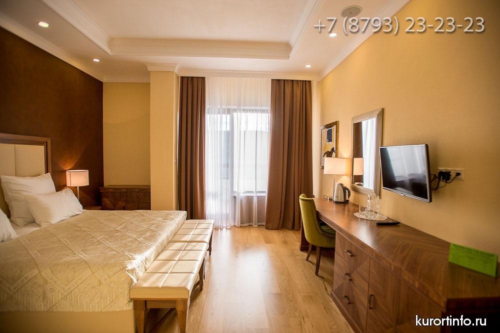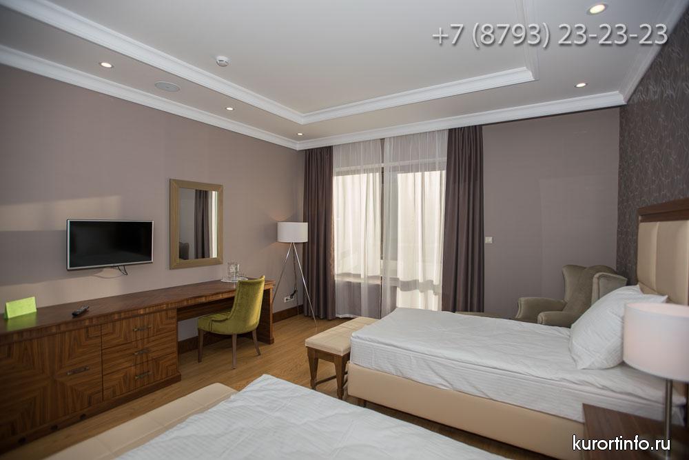 Гости Железноводского санатория размещаются в двух спальных корпусах: "Центральный" корпус, который был открыт в 1967 году и рассчитан на 136 гостей и новый корпус "Люкс", который открыл свои двери для первых посетителей в 2016 году и рассчитан на 100 гостей.