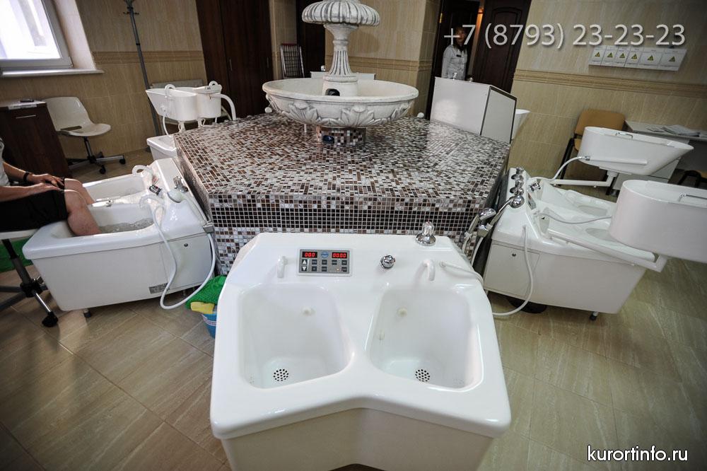 Здравница предоставляет комплекс СПА-процедур, который направлен на укрепление организма человека путем использования минеральной, термальной или морской воды, а также морских водорослей и лечебных грязей.