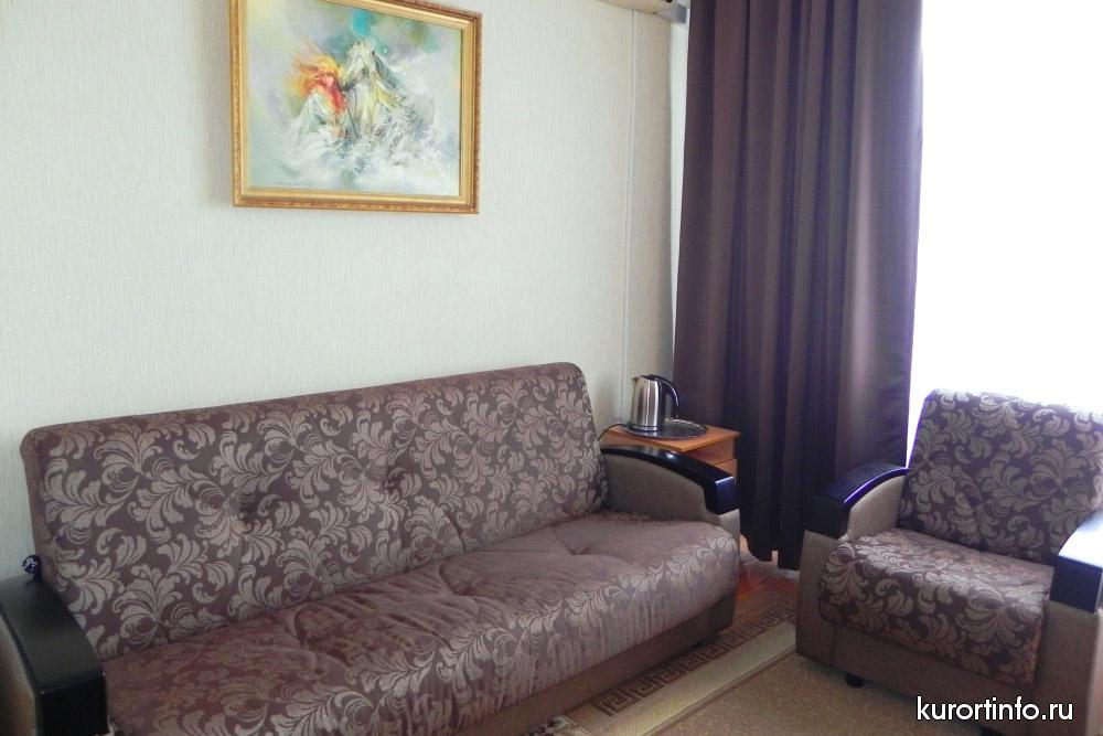 В Железноводской здравнице гости размещают в комфортабельных номера, которые обустроены всем необходимым для комфортного пребывания во время лечения и отдыха. Из окон номеров, открывается красивый вид на вершины гор.