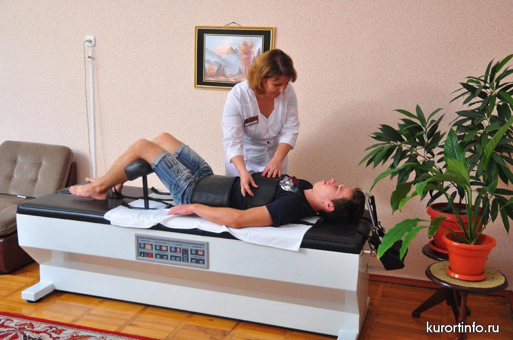 В лечебном корпусе здравницы работают: кабинет гальваногрязи, отделение минеральных ванн, ингаляторий, кабинет светолечения, стоматологический кабинет, массажные кабинеты, бассейн, зал ЛФК и отделение психотерапии.