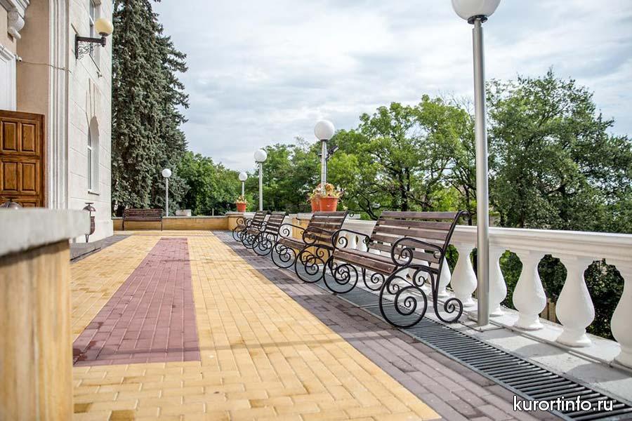 Здравница утопает в зелени естественного лиственного леса в центре Курортной зоны, в нескольких шагах от целебного Лермонтовского источника. Уникальный ландшафт, который создан самой природой, отлично подходит для терренкура различной сложности.