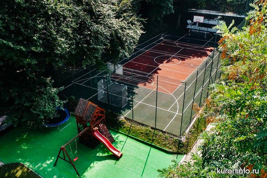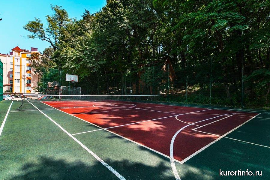 На территории здравницы есть волейбольная площадка, спортивный зал с современными тренажерами, плавательный бассейн и бильярдная комната.