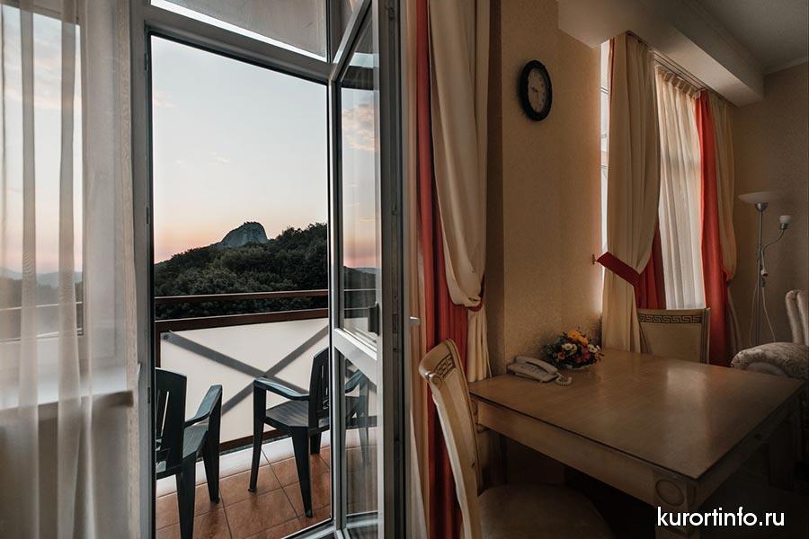 Из окон и балконов открываются живописные виды на горы.