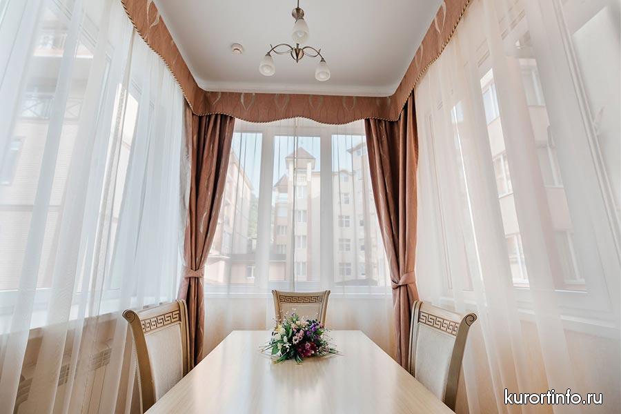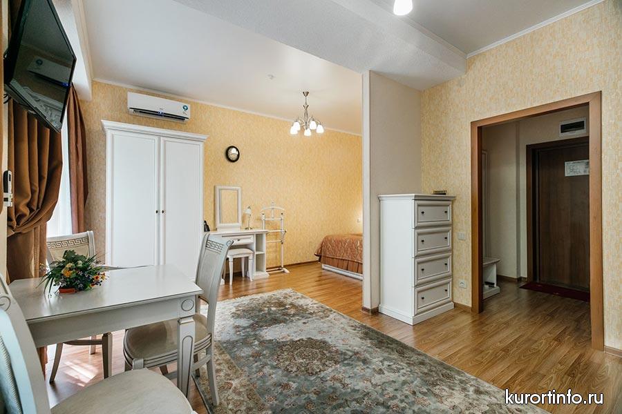 Гостей санатория ждут комфортабельные номера различной категории: апартамент, люкс, джуниор сюит, студия, стандарт комфорт, ОДН и ДВМ стандарт.
