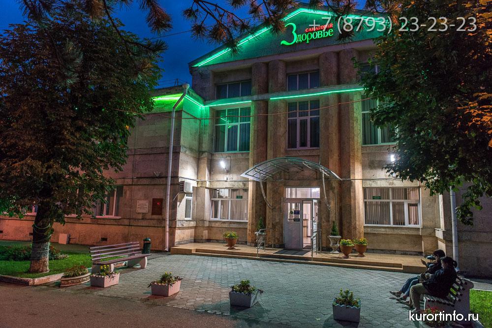 Одной из популярных здравниц города Железноводска является санаторий «Здоровье». Важной особенностью здравницы является ее удобное расположение в курортной зоне города, в шаговой доступности от целебных минеральных источников. Дойти до известных источников можно всего за 5 минут.