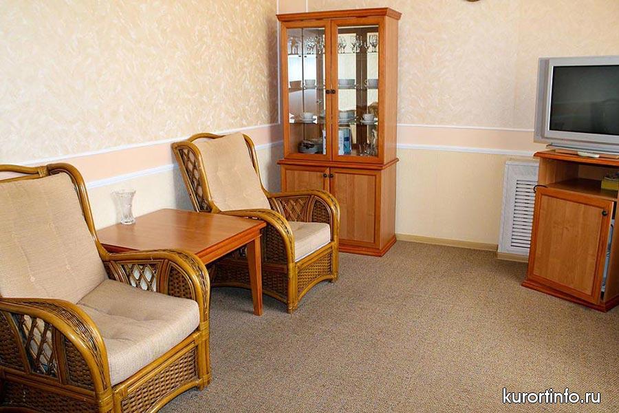 Все номера здравницы хорошо укомплектованы и обставлены удобной мебелью. В номерах категории Люкс установлены кондиционеры.