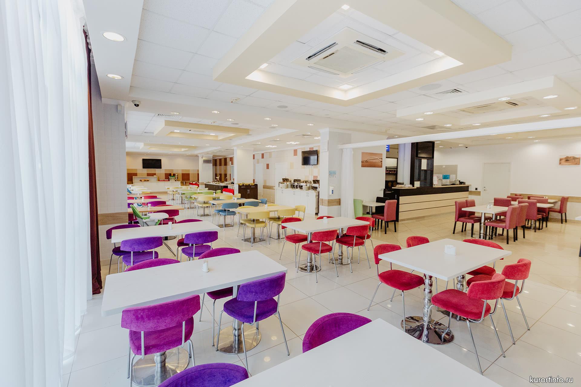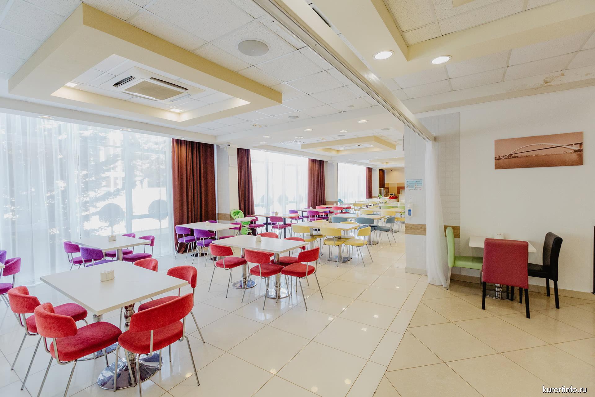 Отдых должен быть не только полезным, но и вкусным - насладитесь разнообразными блюдами в ресторане “Имеретинский”, где для посетителей сервируются вкусные и сытные рационы по системе “шведский стол”, а так же, предлагается обслуживание по индивидуальным заказам a la carte. Можно воспользоваться круглосуточной услугой «Room Service» и заказать еду в номер.