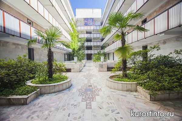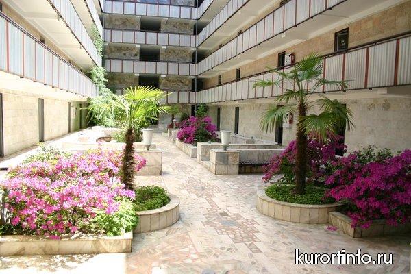 Гости размещаются в красивом, белом 5-этажном корпусе, который способен одновременно принять до 310 гостей.