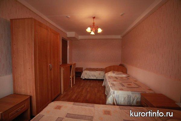 Гостей ждут просторные номера с нарядными светлыми интерьерами и с современной комфортабельной мебелью. Каждый номер пансионата, независимо от его категории, имеет балкон и санузел с душем, полным набором бытовых приборов: холодильник, кондиционер, телевизор, и другие удобства.