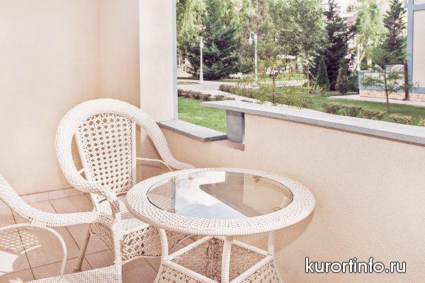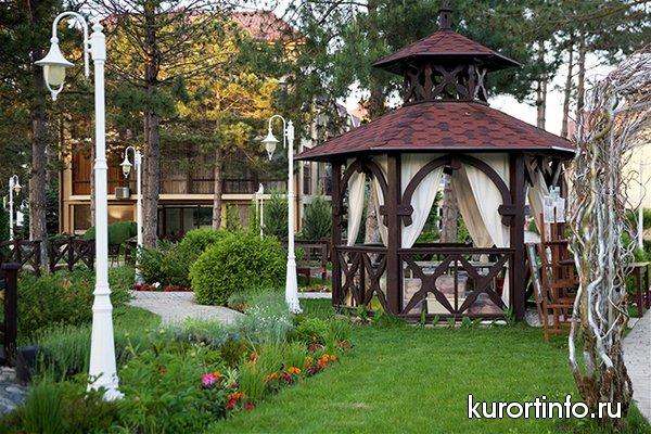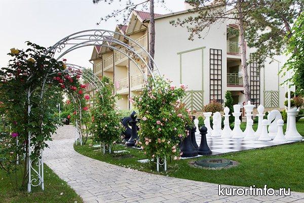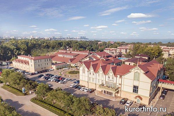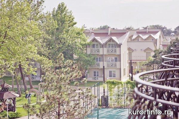На ухоженной территории площадью около 5 га находятся 2-х, 3-х и 4-х этажные корпуса, которые объединены между собой открытыми галереями, два жилых корпуса №8 и 9, здание “Шале” с основным рестораном, конференц-зоной, лобби-баром и службой размещения.