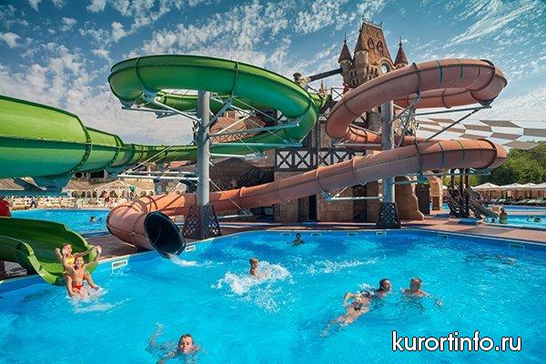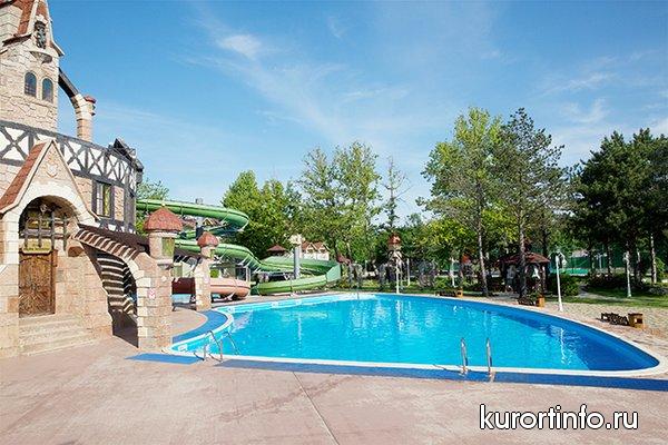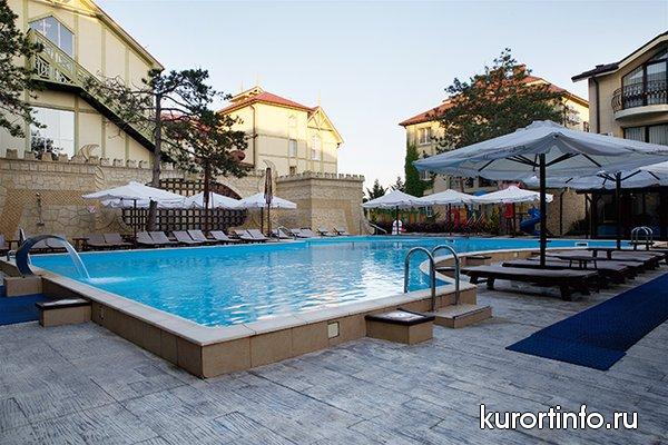 Инфраструктура отеля «Довиль» предлагает посетителям обширные возможности для развлечений и увлекательно отдыха, как взрослых, так и детей. К Вашим услугам: комплекс открытых бассейнов выполнен в виде замка, здесь есть детский и анимационный бассейны с минерализованной водой, бассейны с аква-горками и бассейн для плавания. Между корпусами № 8 и 9 - расположен еще один бассейн с детской зоной.