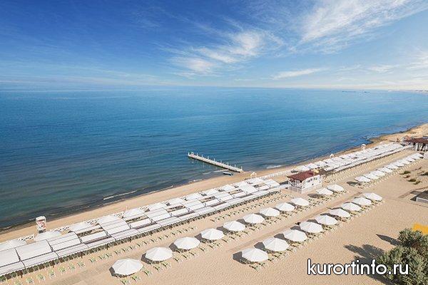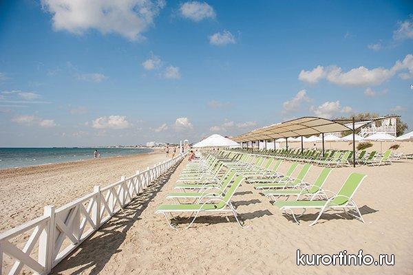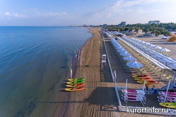 Отеля «Довиль» располагает собственным песчаным пляжем, протяженностью более 200 метров, который расположен в 500 метрах от отеля. Он оборудован теневым навесом, площадкой для пляжного волейбола, снек-баром, раздевалками, туалетом, душем, зонтами и лежаками, пунктом выдачи пляжных полотенец. На пляже проводятся анимационные мероприятия. Доставка до береговой линии осуществляется электромобилями, далее проход по деревянному настилу вдоль моря до территории пляжа.