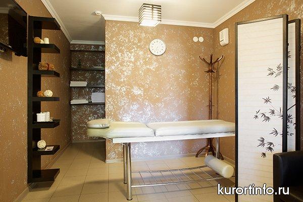СПА-центр отеля представляет собой большой комплекс с термальной зоной (крытый бассейн, джакузи с минерализированной водой, банный комплекс, сауна, аромасауна, хамам, грязевой баней Расул) косметологические и массажные кабинеты и кабинеты для различных спа-процедур.
